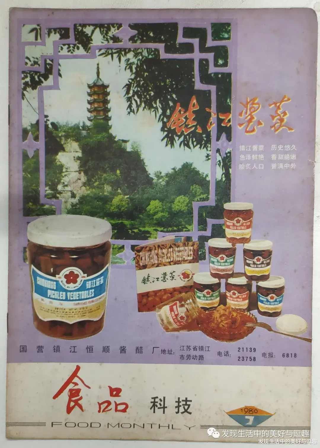 这个是杂志第七期的封面 也是一个广告。小时候不知道这个罐头是什么?一直以为是类似红果的糖水罐头。现在才知道,这是镇江酱菜!小时候的念想就此破灭了……