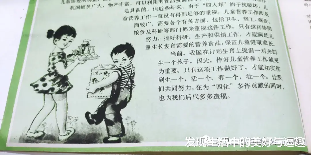 儿童的营养也是重中之重,小时候很喜欢看这个图那个小姐姐得端着什么好吃的?鸡蛋?牛奶?还有什么?那个小男孩儿的饼干匣子里又有什么饼干或者糕点呢?