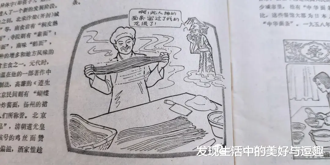 画中那龙王说道:“啊!此人抻的面条赛过了我的龙须了!”可见说的是龙须面