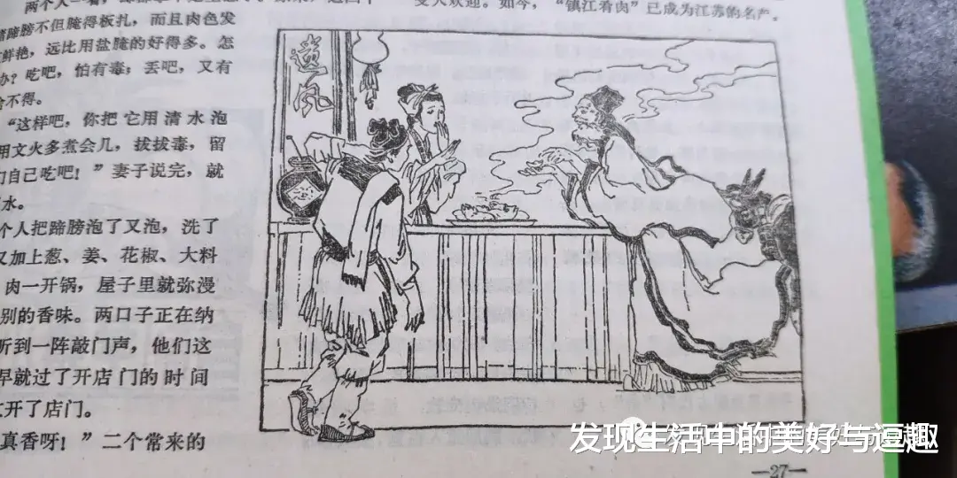 喜欢这个杂志里每期都会讲一个关于各地名吃的传说故事,这一期讲的是张果老吃硝肉。说是有夫妻开店,本打算炖猪蹄,丈夫误把火药的硝粉当成盐放进了炖猪蹄的锅里。