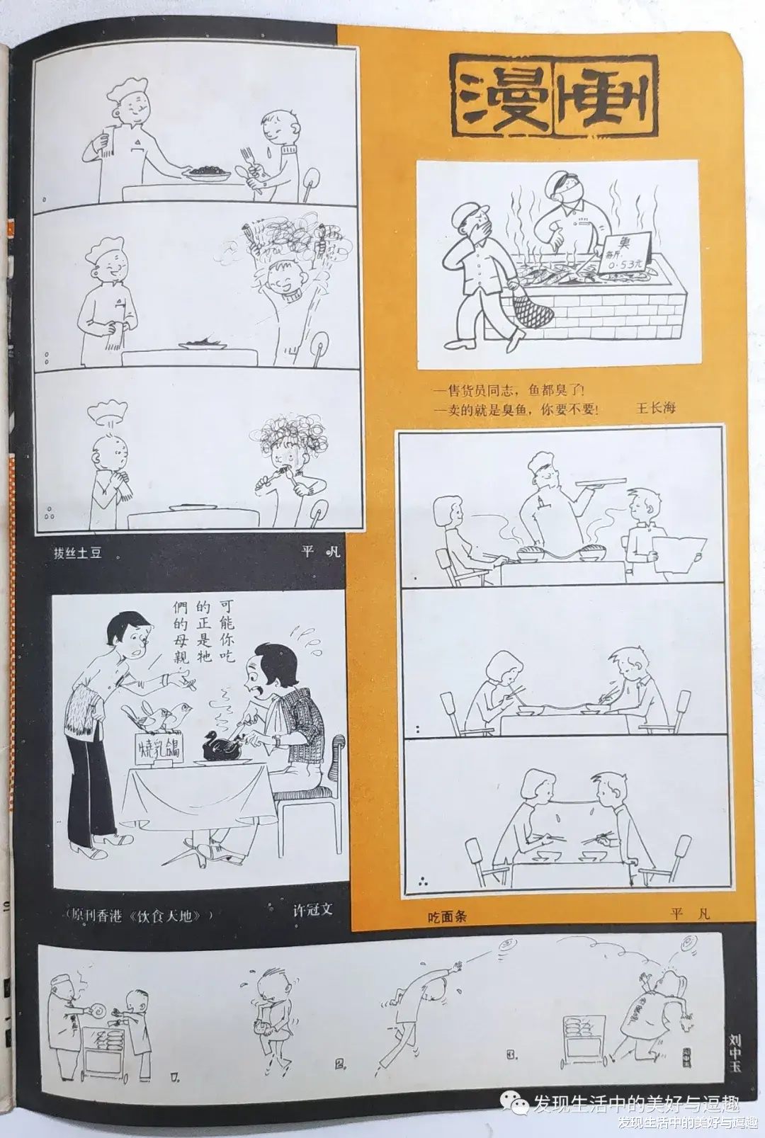 这一页的封底是小时候印象深刻的漫画,最底下买的饼很像螺丝转。在今天重看还发现了个小彩蛋,那个吃乳鸽的香港漫画作者是许冠文,最早的原始长文里,我以为是许冠英、许冠杰他们的哥哥,实际上是香港很有名的漫画家,曾著有抗日漫画《财叔正传》