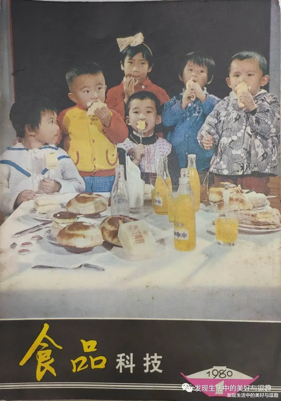 此篇长文的头图,就是《食品科技》正式创刊号1980年的第一期。一群小朋友在吃蛋糕,桌上摆着桔子汽水和面包糕点。现在看来有着年代感以及那时的幸福感。