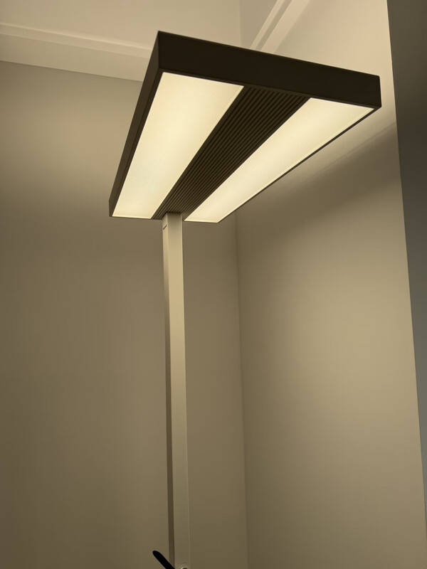 落地护眼阅读灯哪个牌子好?月影Air采用进口专利芯片,在防蓝光方面有效降低了有害蓝光,让蓝光峰值在0.4,有效的保护了眼睛。在灯光方面,采用上下漫反射360°立体光线,可满足不同场景的光照需求,还搭配了无极调光技术,兼顾了操作便捷性与光效适配性,让光线随需求可实时变化。不过在光线方面,缺少红光补偿波段,对眼部的保护效果还需提升。
