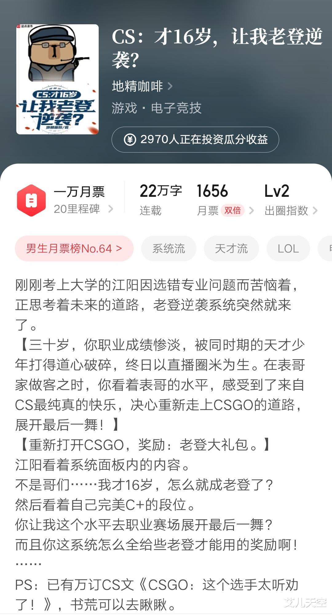 4、地精咖啡的cs新书已经首订破万