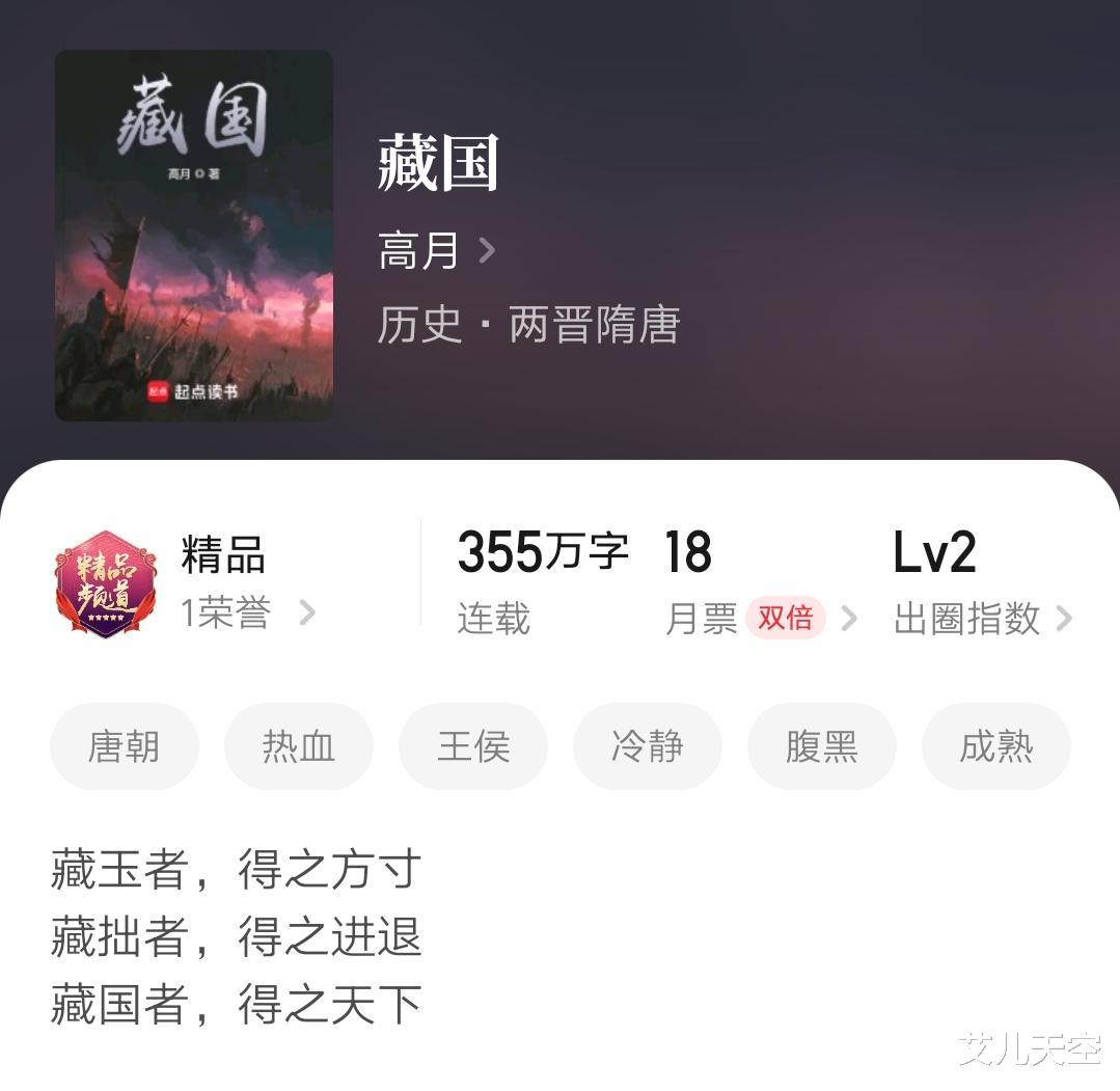 历史大神高月的作品《藏国》已经在昨天完结了,他之前已经开了隋朝题材新书《隋朝的棋局》。