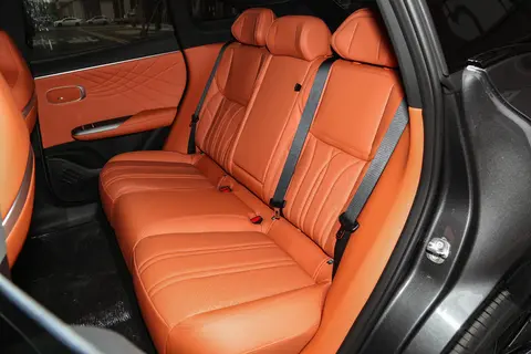 车身侧面的线条特别流畅,车顶微微往下溜,有点轿跑SUV的意思,隐藏式门把手一按就弹出来,无边框车门关上的时候“咔嗒”一声,比普通车门的关门声高级多了。