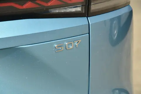 车尾部分,两台车都用了贯穿式尾灯,但深蓝S07多了个运动尾翼,还有那个三叶草造型的尾灯,晚上点亮之后,辨识度比宋PLUS高太多了。