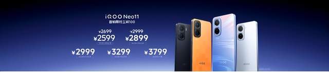 iQOO Neo11 共有 5 个版本可供选择,12GB+256GB 版本售价 2699 元(首销限时到手 2599 元);16GB+256GB 版本售价 2999 元(首销限时到手 2899 元);12GB+512GB 版本售价 2999 元;16GB+512GB 版本售价 3299 元;16GB+1TB 版本售价 3799 元,即刻下单,享更多权益。