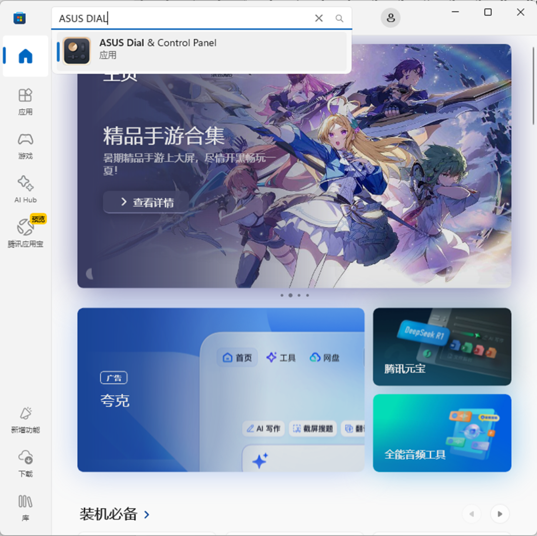 请前往微软应用商店下载ASUS Dial & Control PanelApp。