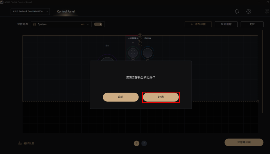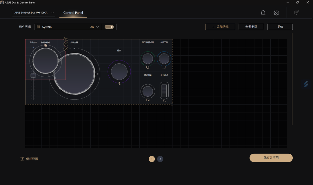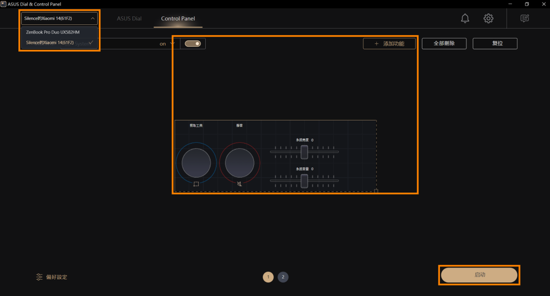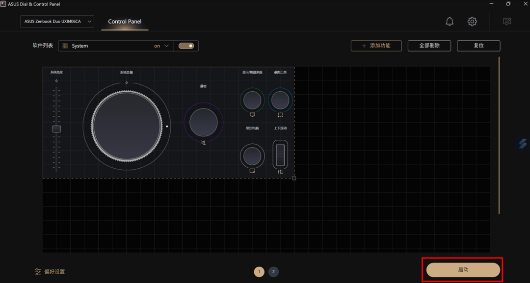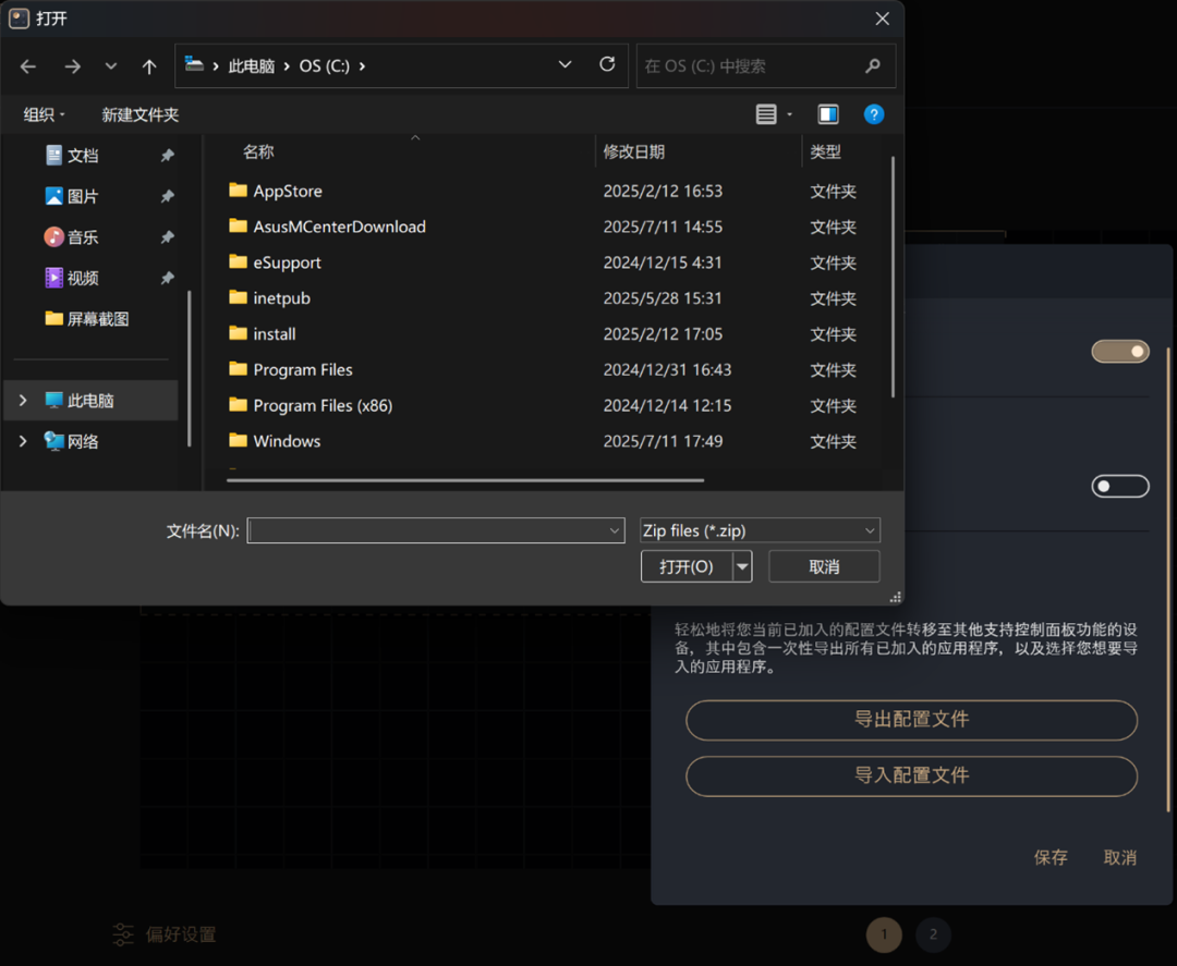 (3) 当重装过ASUS Dial & Control Panel软件时,可以点击 [导入配置文件],找到并选中之前保存好的 [配置文件],点击 [开启],即可将软件恢复至之前的状态。