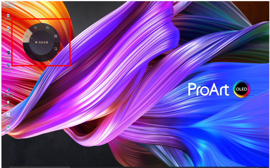 按压左侧 ASUS Dial 虚拟触控板旋钮,电脑屏幕上就会出现 ASUS Dial 图标。
