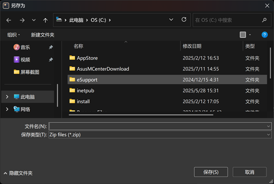 (2) 点击 [导出配置文件] 后,系统会出现弹窗,找到保存您配置文件的的文件夹,输入 [文件名],点击 [保存],保存配置文件。
