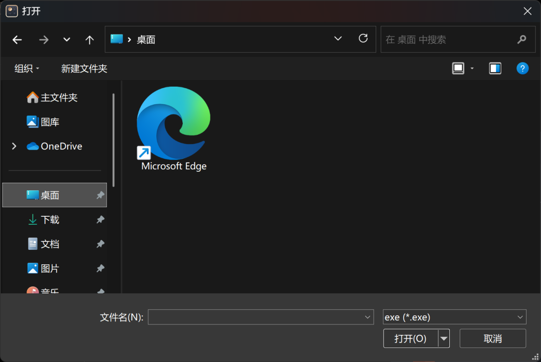 (3) 在弹出的系统弹窗中,可以手动将后缀为exe的应用程序添加到 [软件列表中]。