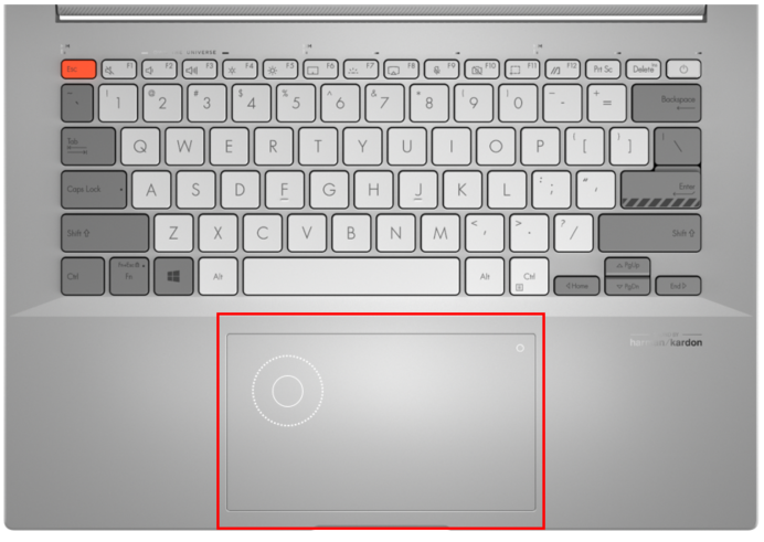 将手指放在触控板右上角的虚拟旋钮图标上,往左下方滑动手指,ASUS Dial 虚拟旋钮会出现在触控板上。