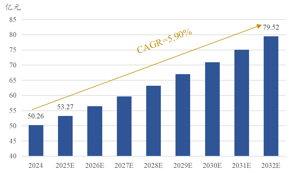 国内电子病历(EMR)市场在2024年的市场规模为50.26亿人民币,预计2025年达到53.27亿元,到2032年将达到79.52亿元,年复合增长率为5.90%。