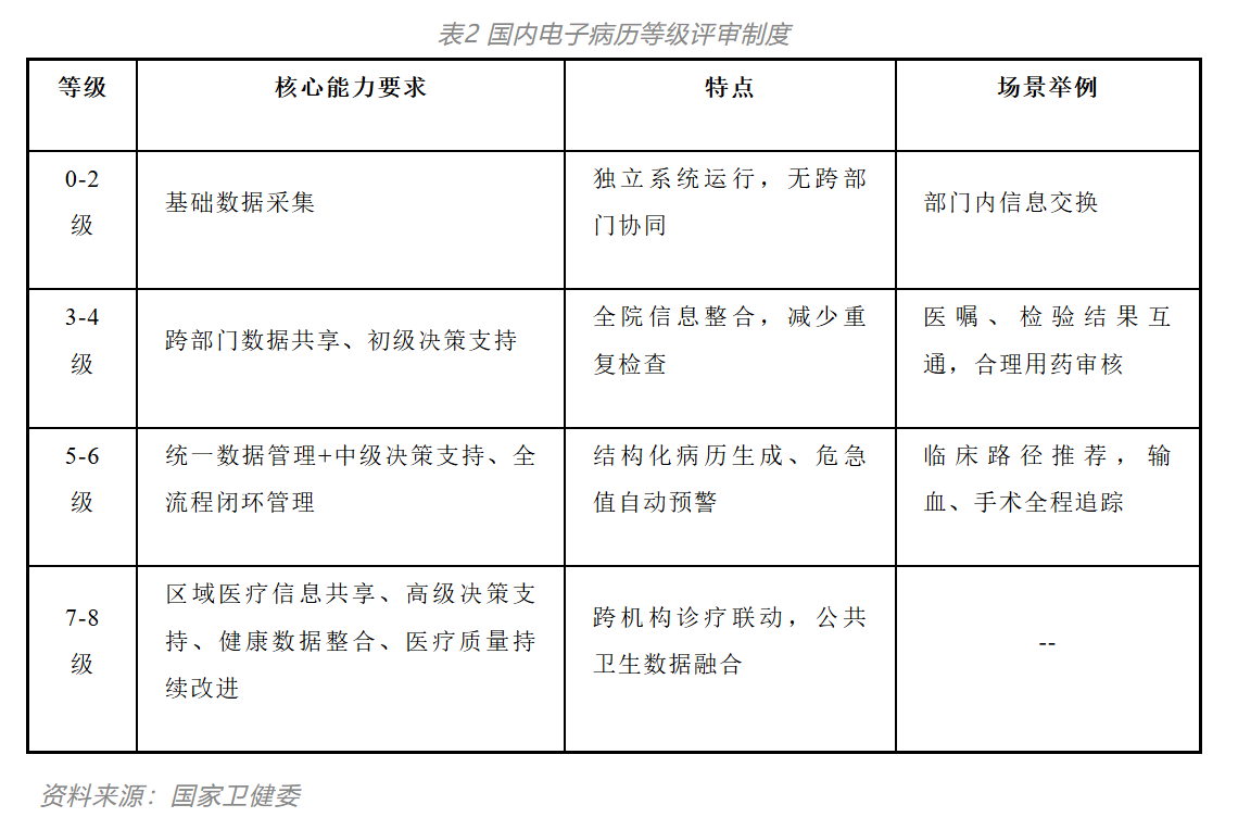 评级正成为促进国内电子病历市场发展的引擎。目前国内各省为了响应卫健委号召,正积极建立电子病历等级评审机制,推动4级及以下级别的评审工作,很多县级医院正在按照4级标准要求来建设或者升级系统。
