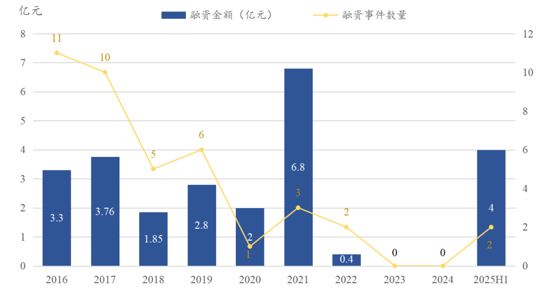 图11 2016-2025H1国内电子病历融资事件数量与金额变化