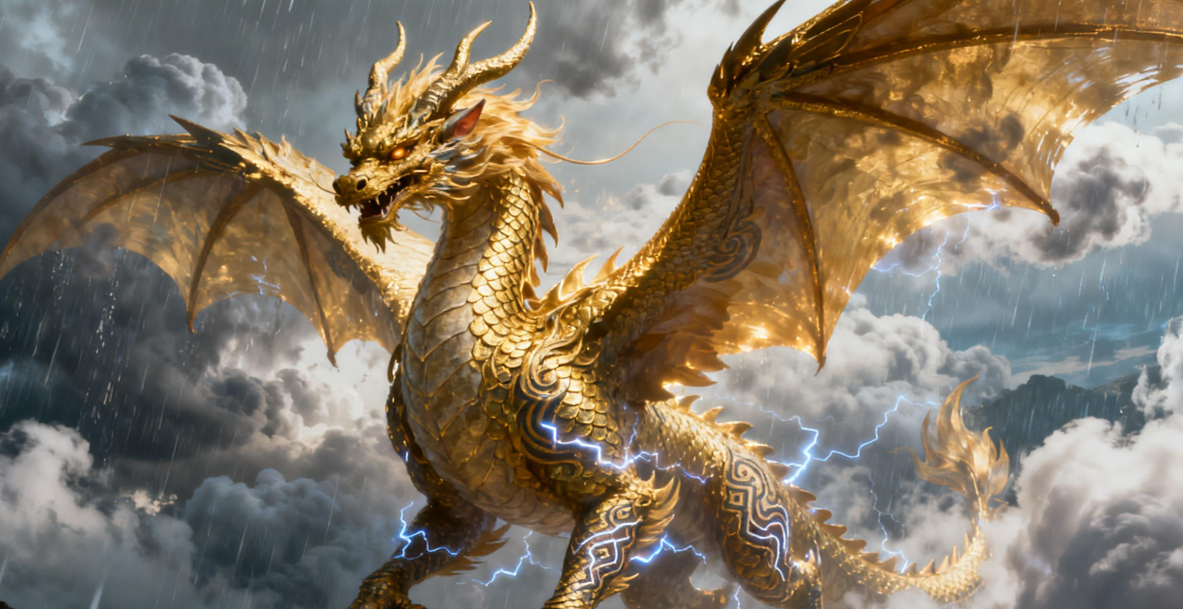 它是所有龙的 “终极进化形态”—— 不像普通龙只有蛇身,应龙长着一对金色的羽翼,展开时能覆盖半个中原,鳞片是带着流光的赤金色,每片鳞片上都刻着古老的云纹。它不仅能呼风唤雨,还能操控雷电:下雨时,雨滴会带着淡淡的金光,落在田里能让庄稼增产;打雷时,雷电是赤红色的,能劈开 mountains(山脉)。