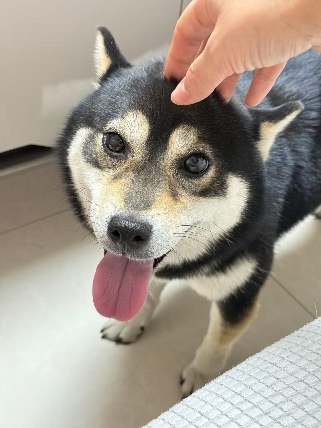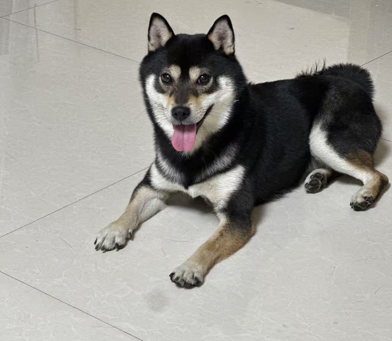 爱犬名叫“团子”,黑白柴犬,母犬,4岁半,体型中等。