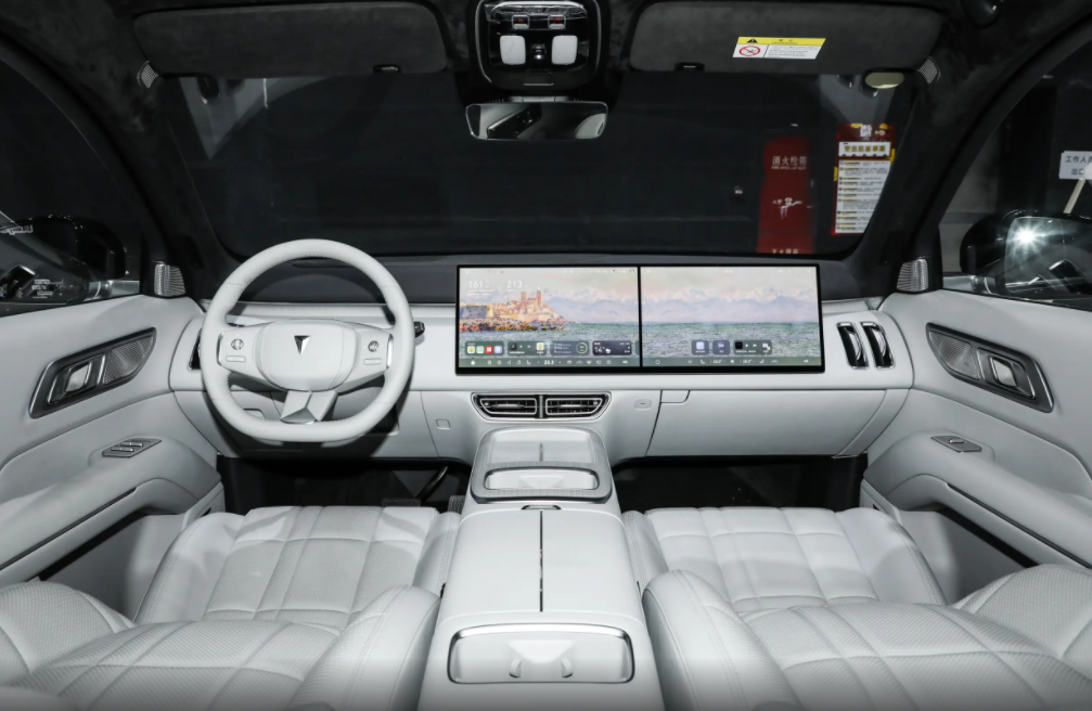 再说到科技质感方面,深蓝S09与深蓝旗下的大多数车型相同,均没有配备仪表盘,转而采用了AR-HUD抬头显示功能,这也让我们无需低头查看车辆状态,在用车的安全性上,还是有一些提升的,同时除了入门车型之外,深蓝S09的其余车型均采用了双15.6英寸的显示屏幕,因此在车内的科技质感方面,深蓝S09的确有着不俗的表现。此外,在屏幕的分辨率上,深蓝S09则达到了2.5K,简洁的UI界面,而且我们还可以让许多功能都集成在桌面上,方便我们下一次打开,再加上丰富的功能配置和海量APP的应用商店存在,在整体的实用性上,深蓝S09着实有着不错的表现。