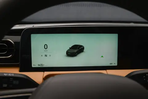 进入车内,零跑C01 625尊享版的内饰设计同样让人眼前一亮。新增的礁灰+驼绒棕配色 scheme 带来了一种温馨且高级的感觉,棕色调显得典雅大方,适合家庭用车氛围。中央悬浮矩阵式三屏设计是内饰的一大亮点,包括10.25英寸高清仪表屏、14.6英寸2.5K高清中控屏以及10.25英寸副驾娱乐屏,科技感十足。中控屏分辨率高达2560*1440,显示效果清晰细腻,边框最窄处仅7.2mm,视觉上更加沉浸。此外,车内还配备了INS透光氛围灯,光线柔和且富有层次感,夜晚驾驶时能营造出舒适的氛围。而悬浮式门内把手与电控内开门设计,既简约又实用,只需轻按即可解锁车门,为日常使用增添了一份便捷。