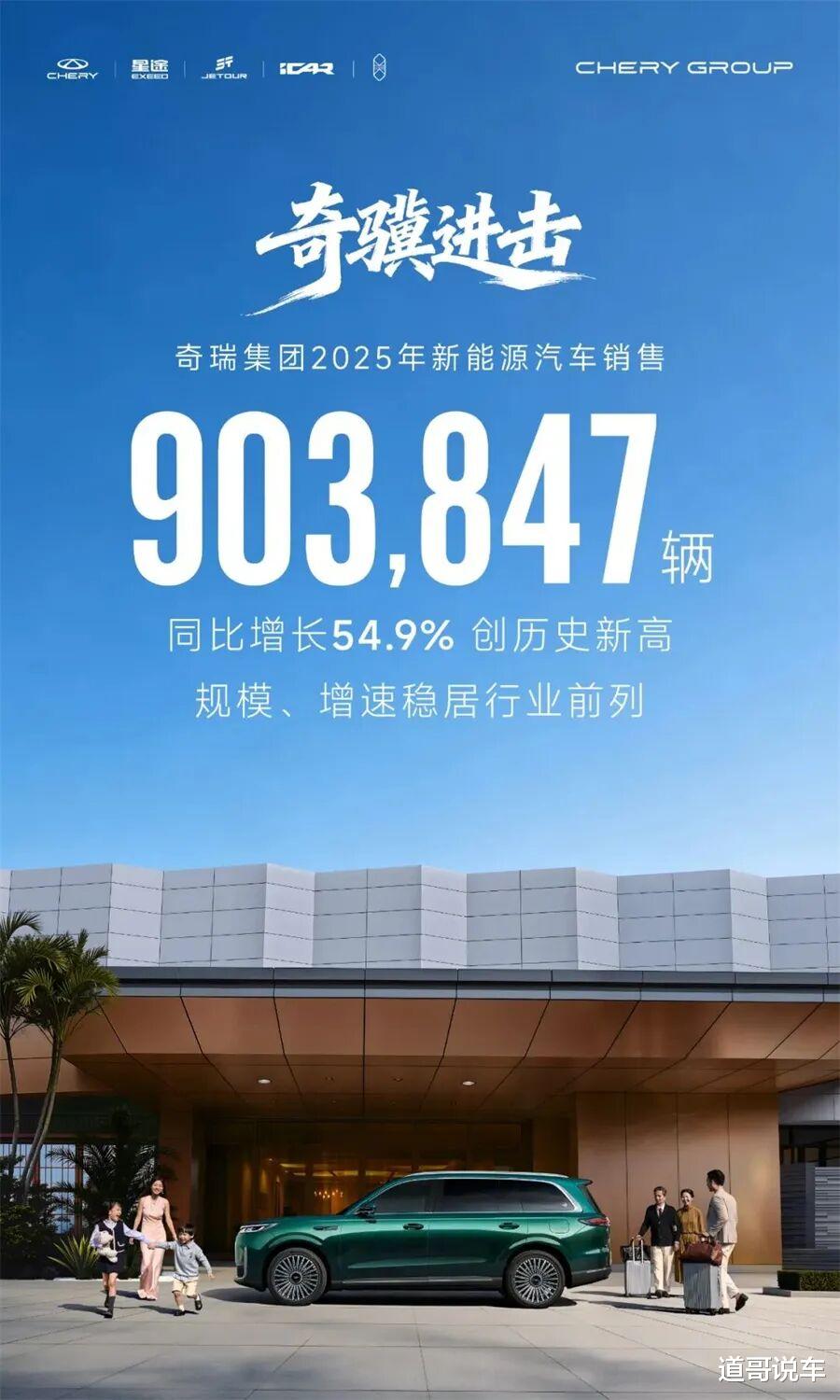有多“硬核”?数据显示,2025年,奇瑞集团全年销售汽车280.64万辆,全球累计用户达到1853万,其中,新能源业务更表现惊艳,全年销量90.38万辆,同比增长54.9%,创历史新高。