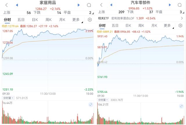 日内强势,家居、汽车零部件。涨停股集中所在。开盘随即拉升,拉升后高走震荡,板块收盘涨幅一般。