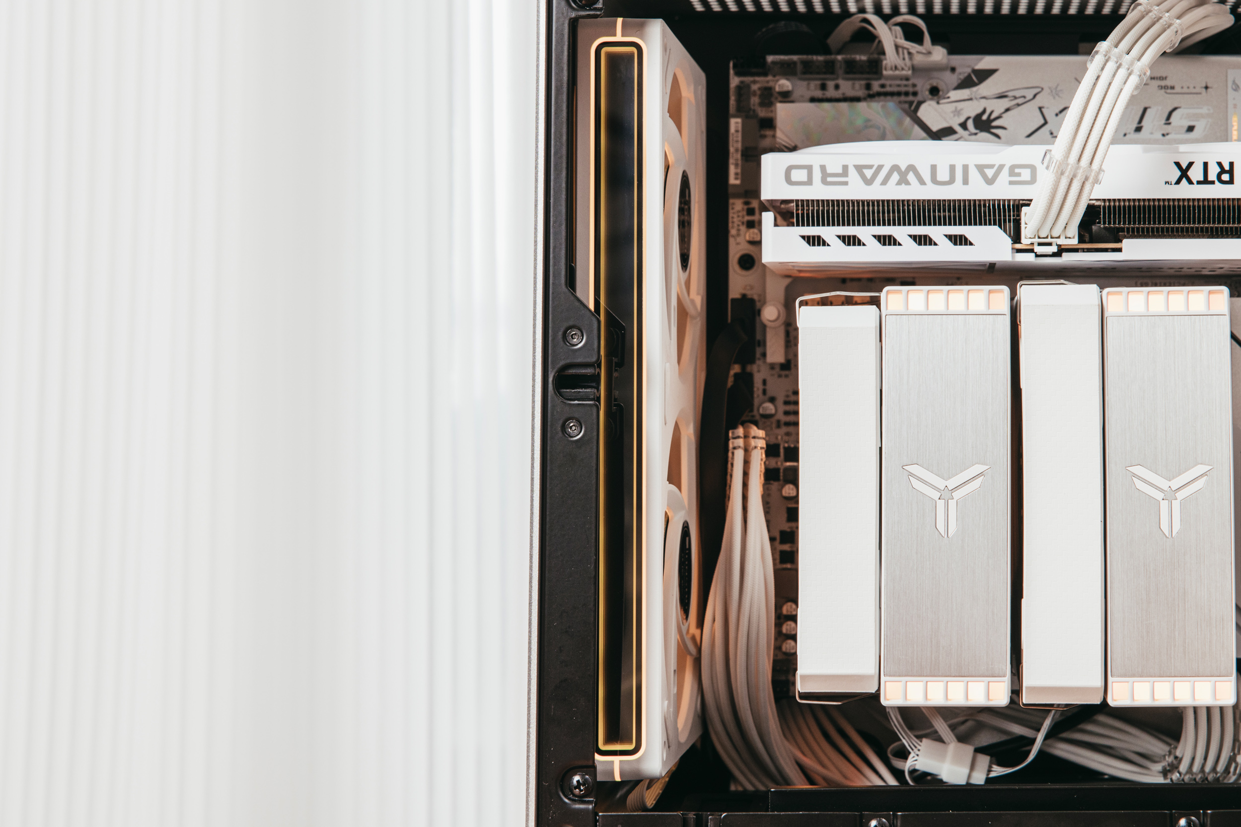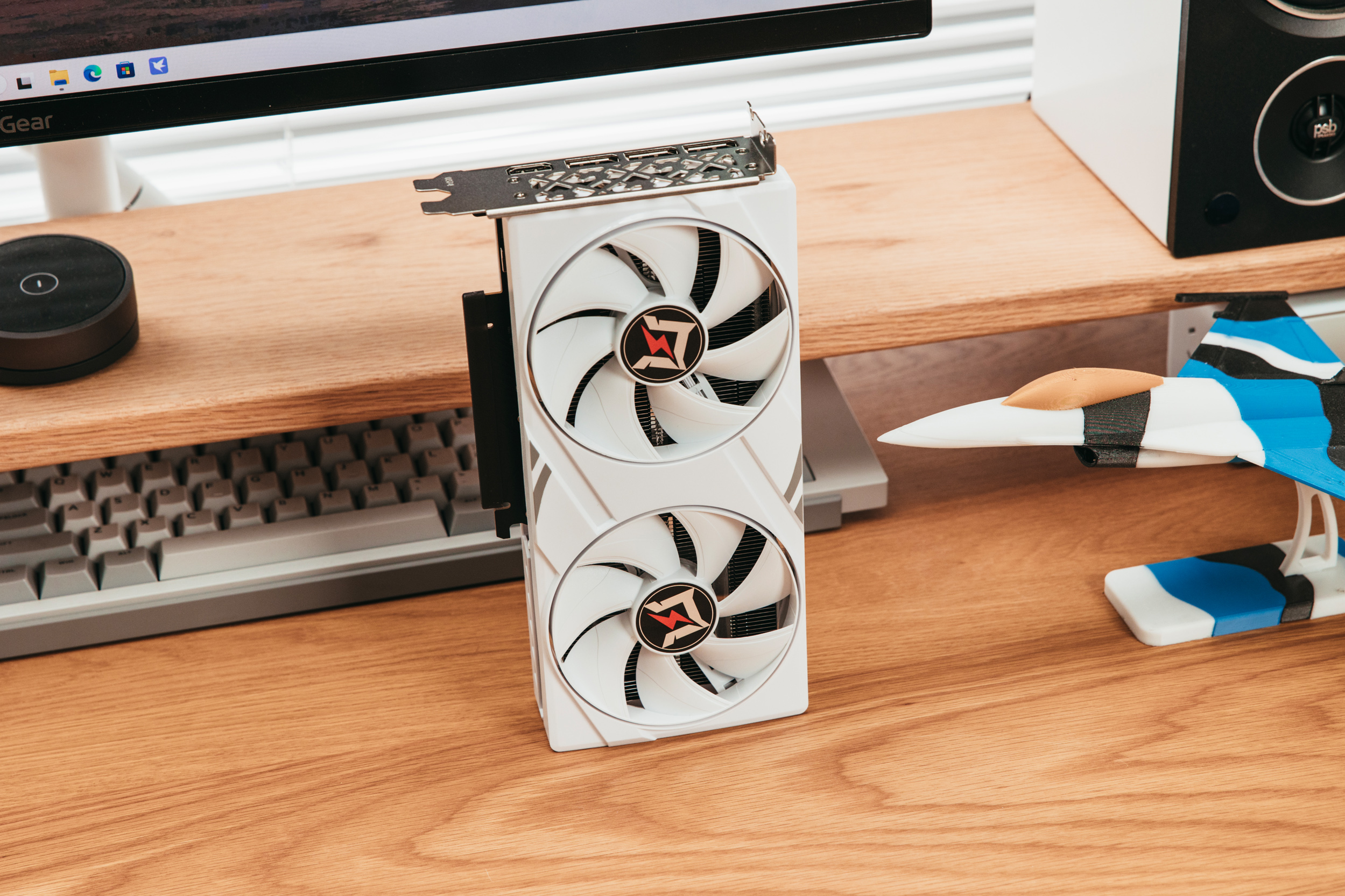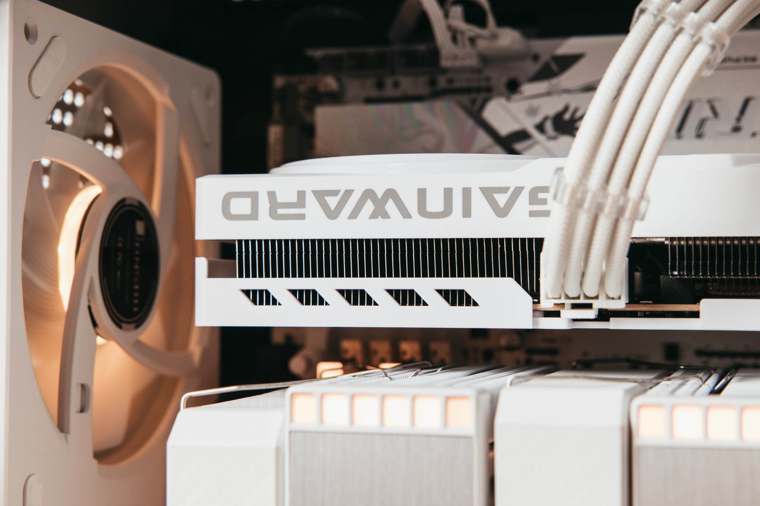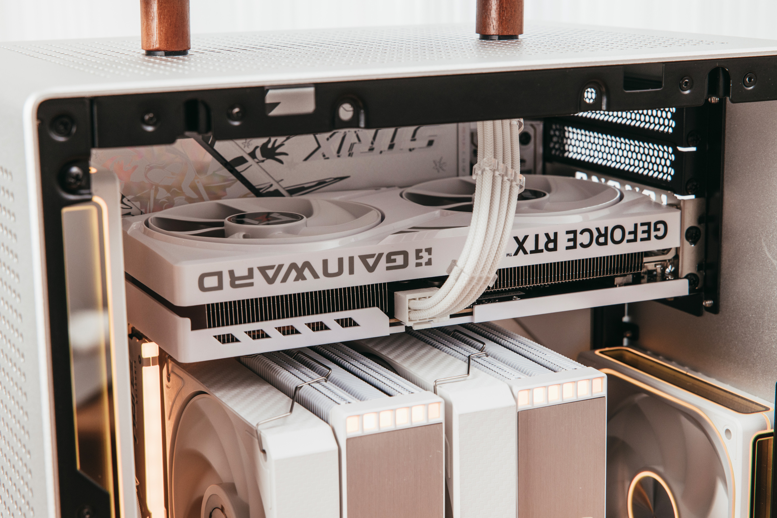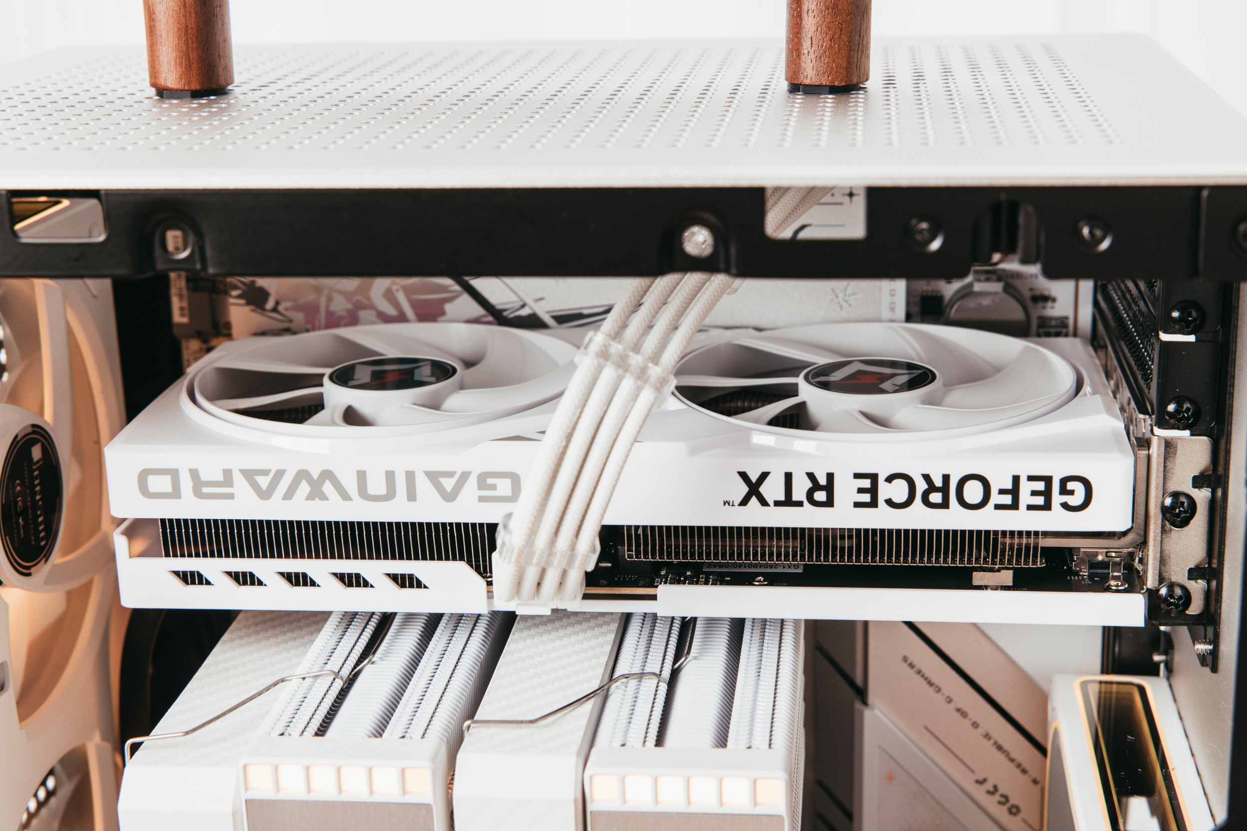 倒置的耕升5060追风OC 8G白色特写,完全的纯白无光显卡,很纯粹。