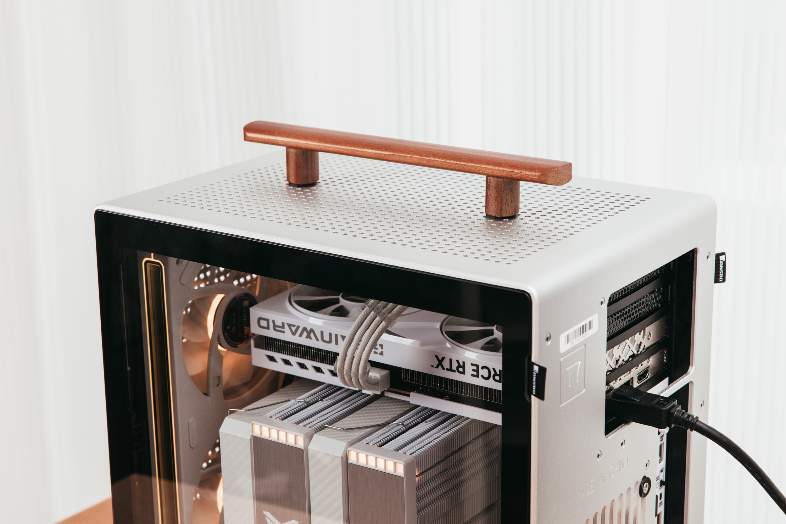 顶部的木制手柄承载力有限,建议只做为装饰或者短时间使用,毕竟MATX规格的T7比ITX的T6更重。