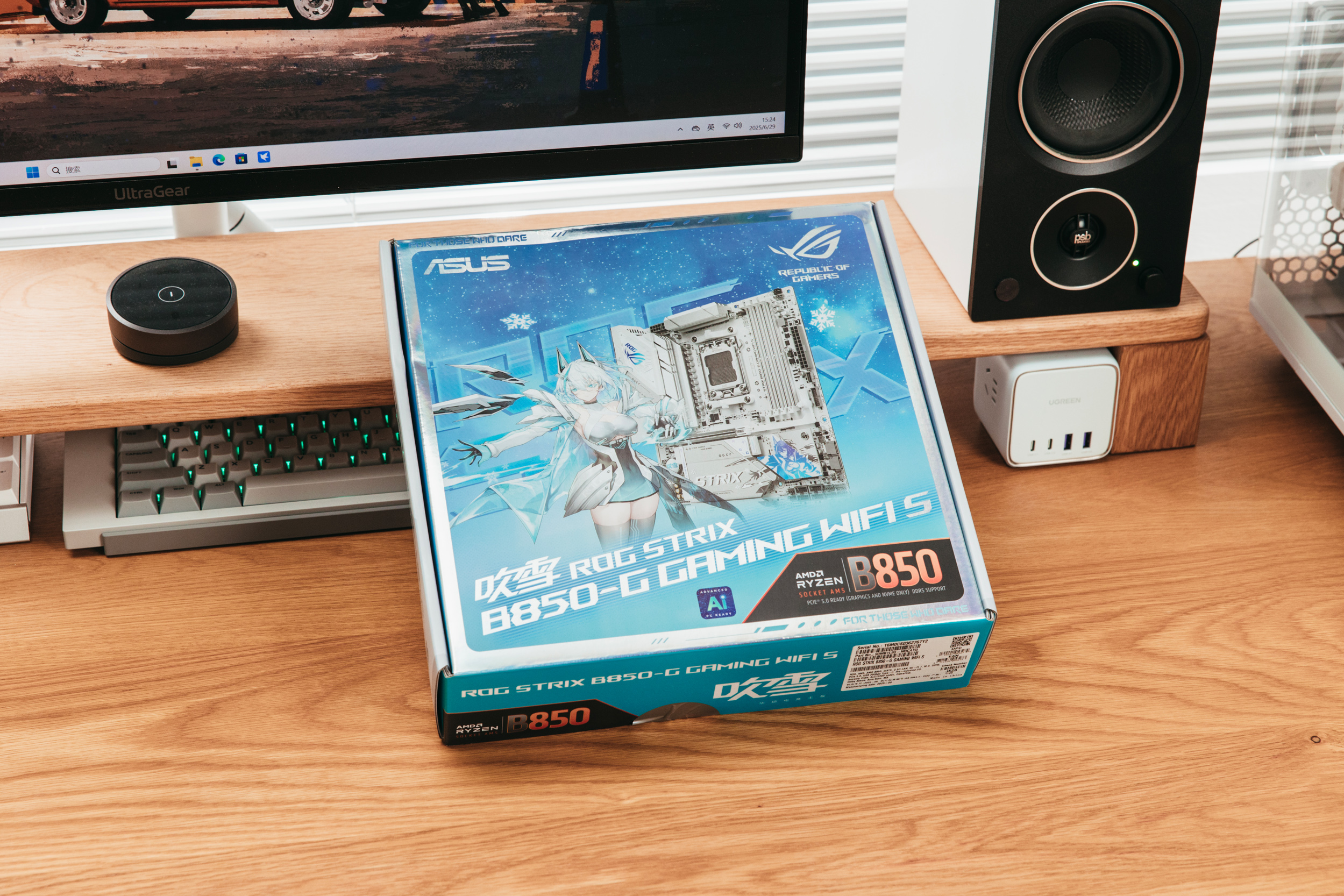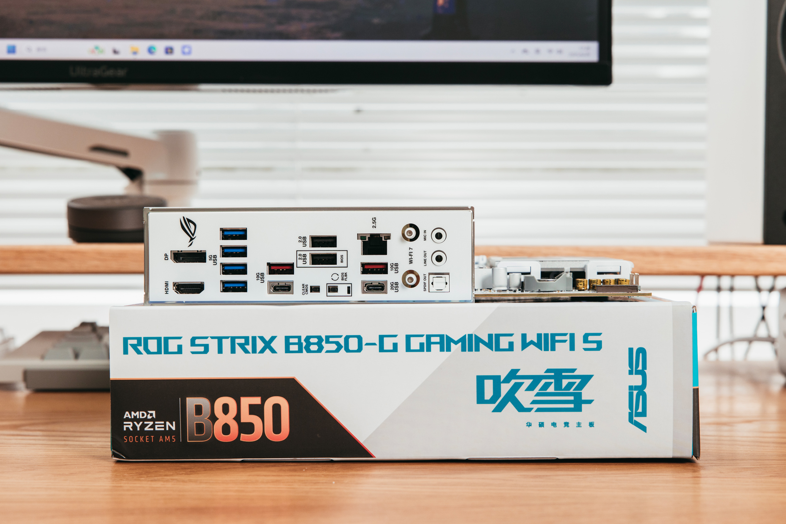 主板来自ROG的B850-G GAMING WIFI S小吹雪主板,和X870吹雪一样,采用了白色PCB,但整体白化程度更彻底,鉴于AMD平台白色主板相对较少,ROG B850小吹雪应该是为数不多的优质选择。