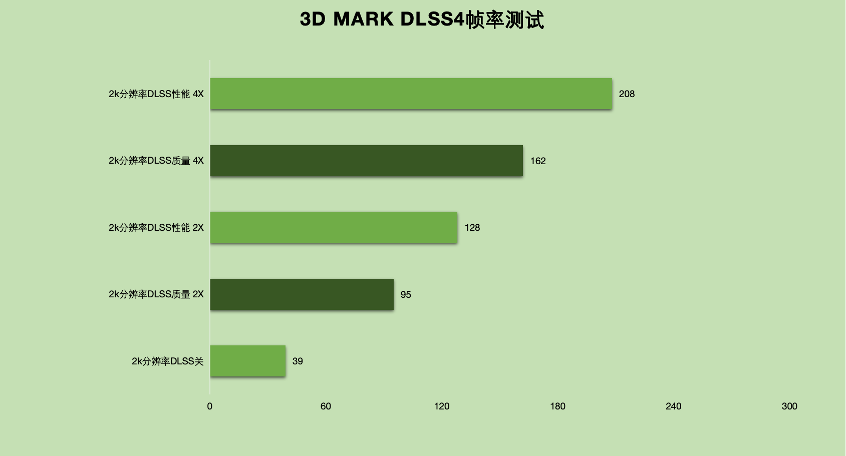 测试了下2k分辨率的DLSS4成绩,不开启帧率仅有39帧,质量模式下2X、4X成绩分别是95、162帧,提升幅度分别是143%、315%,性能模式最高433%。