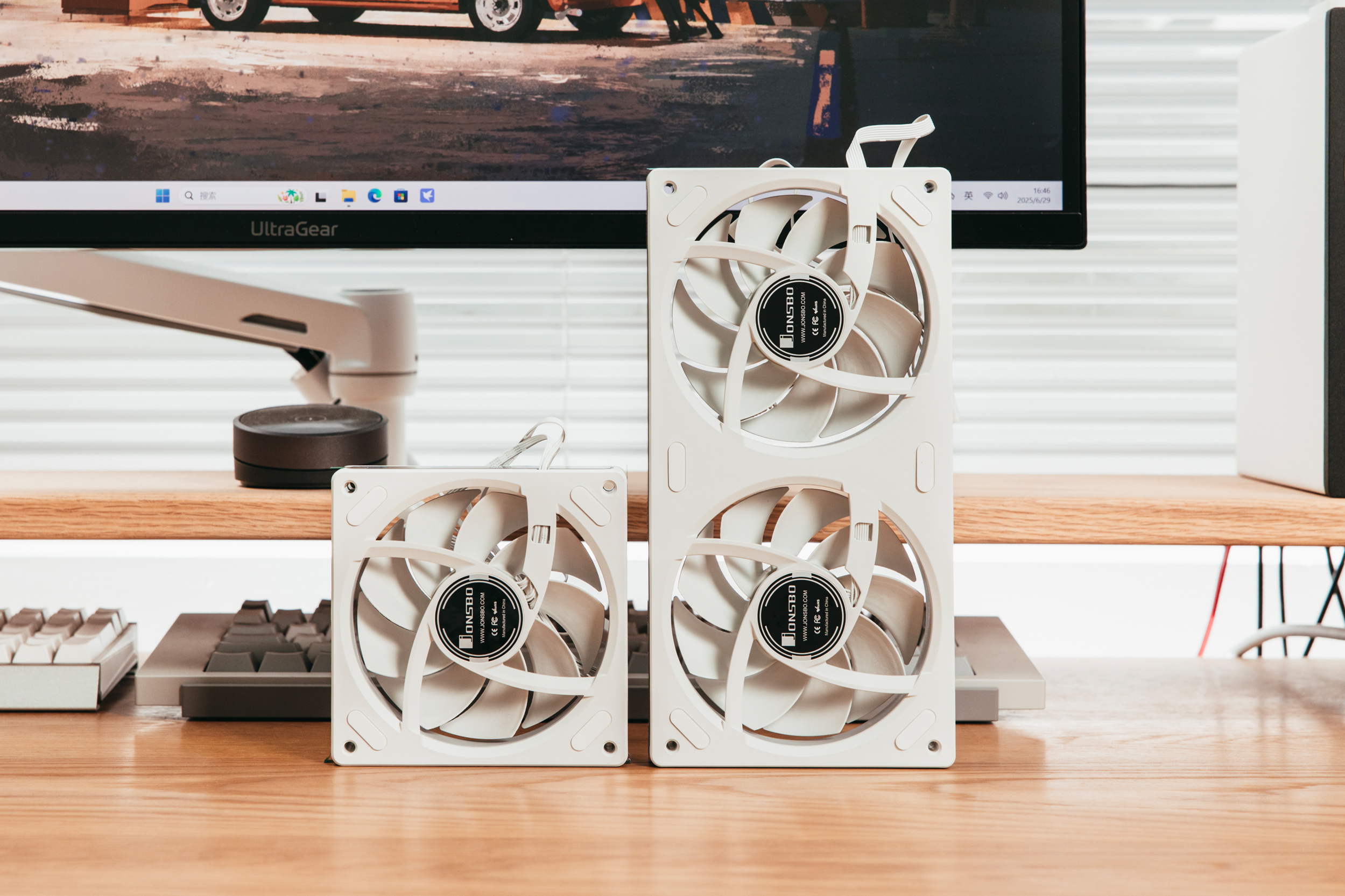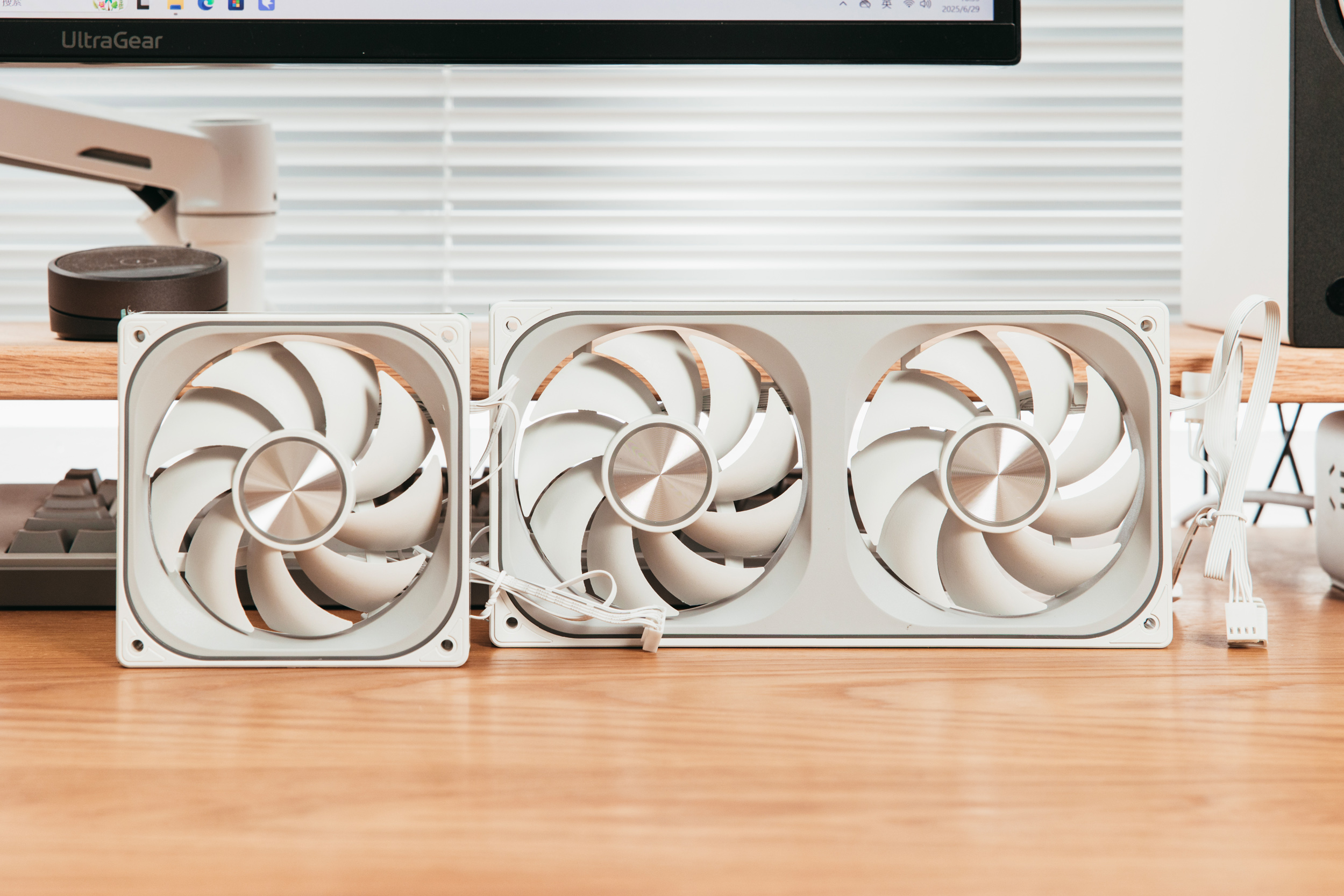 尺寸大小虽有差异,但是两者转速最高均为2000RPM,噪音略有差异,13cm风扇略高一些,最高32.1dBA,但是都属于静音风扇范畴。