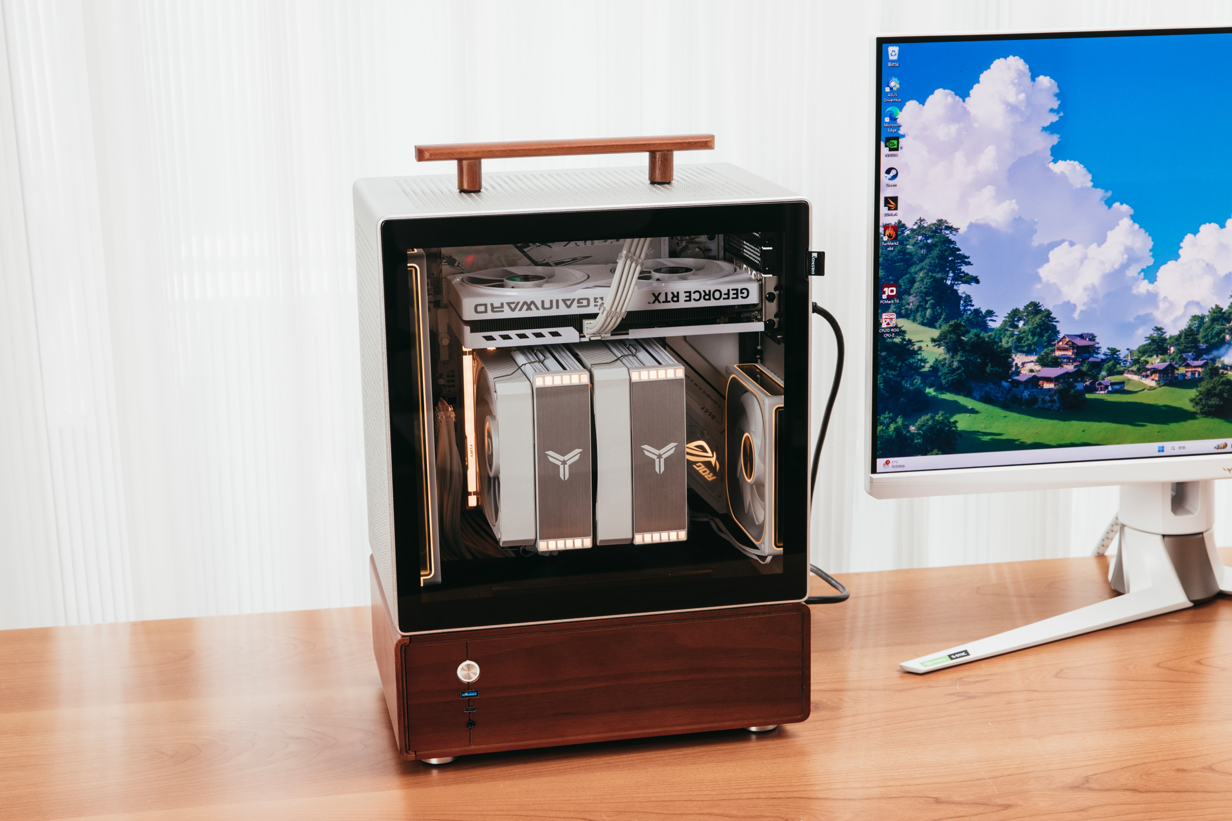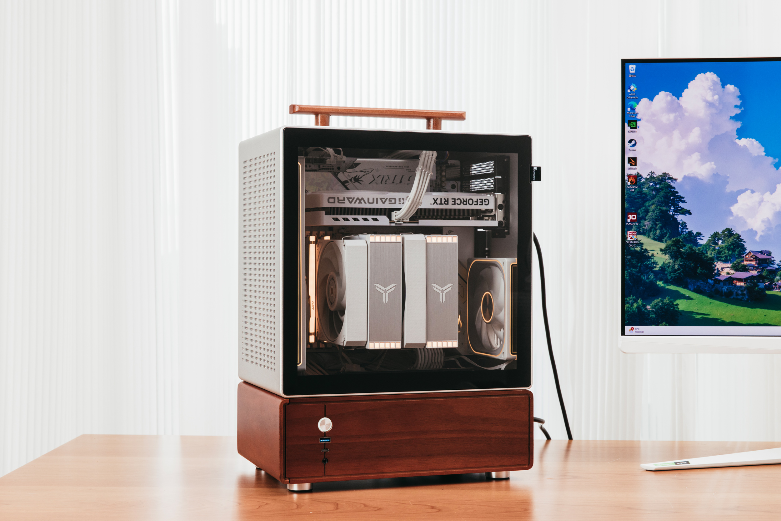 这两年铝合金结合实木的机箱设计很流行,这类主机兼具了家居属性,颜值上比较亮眼。