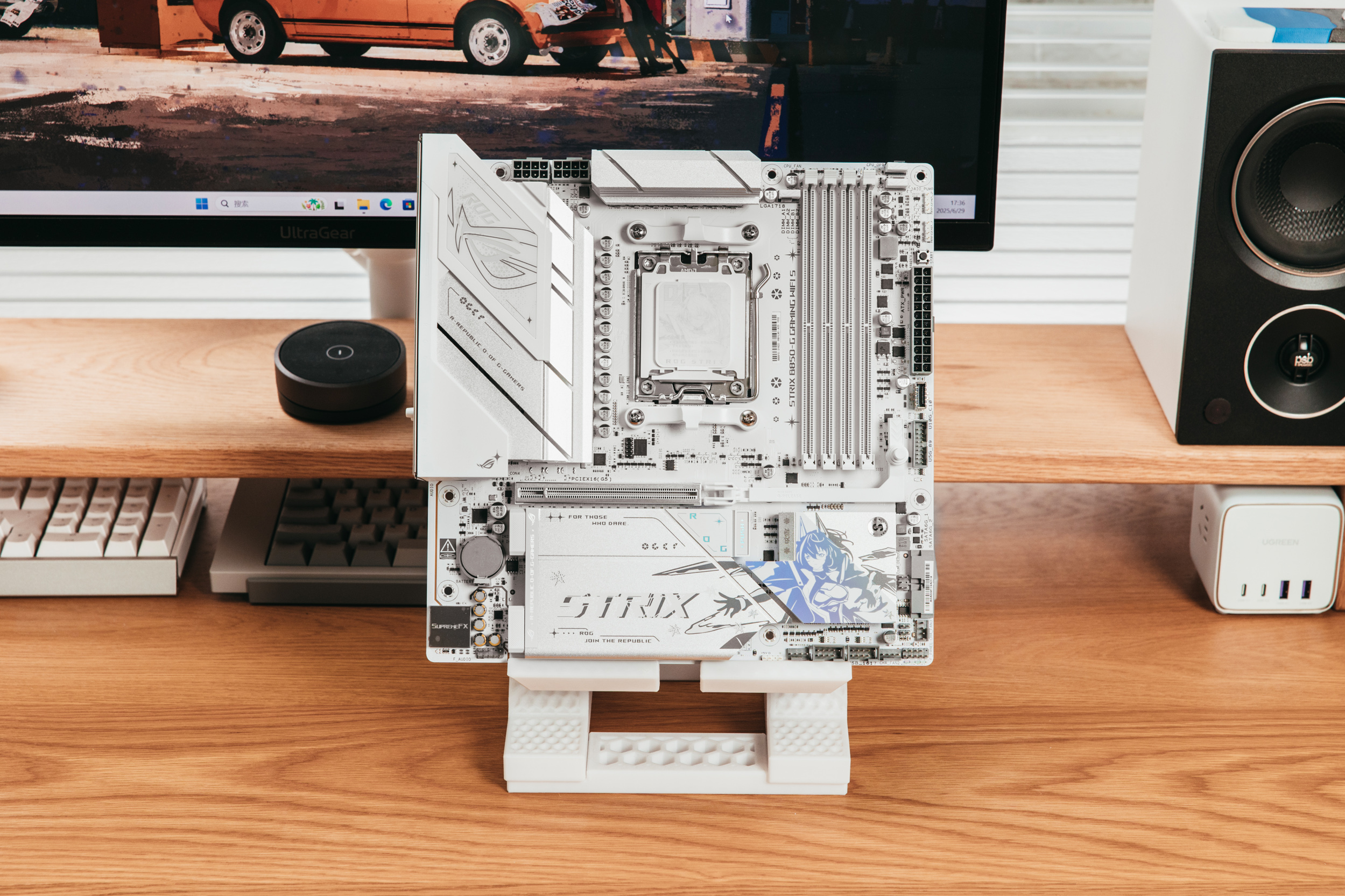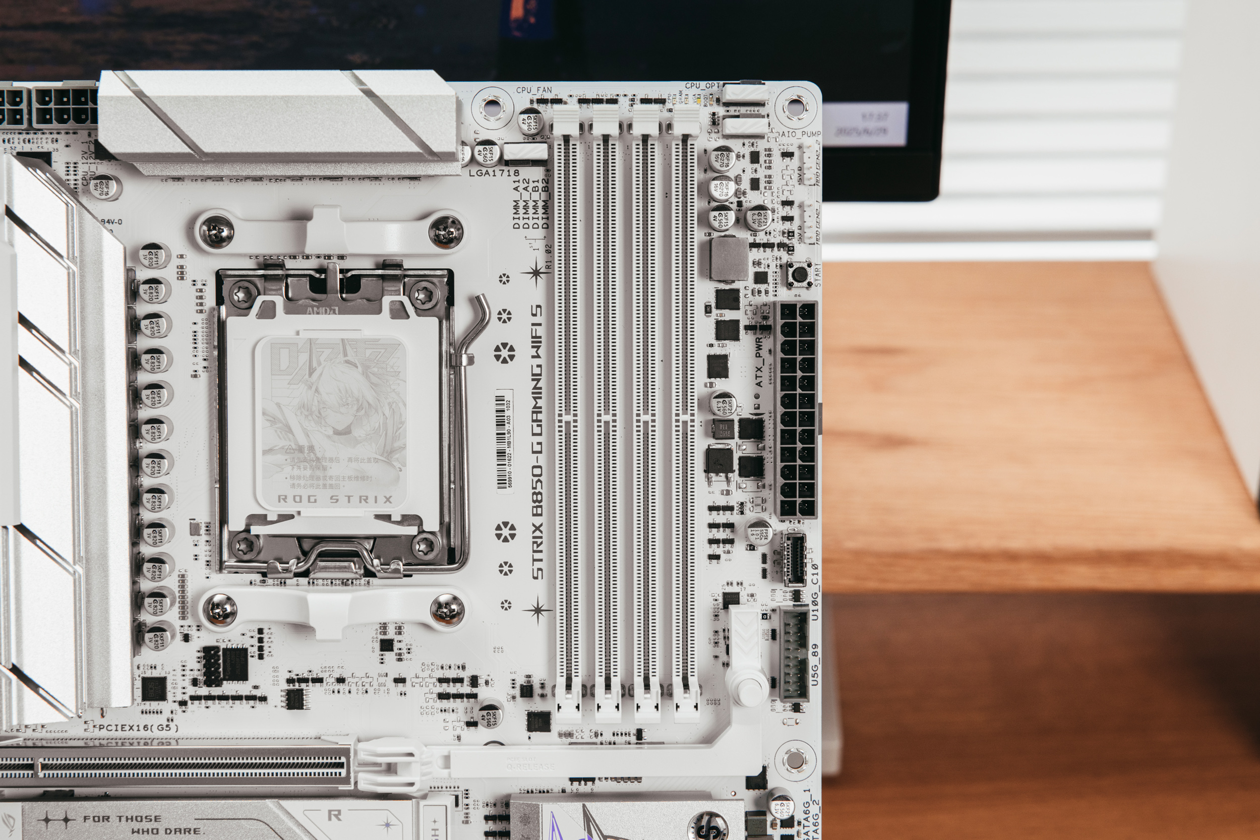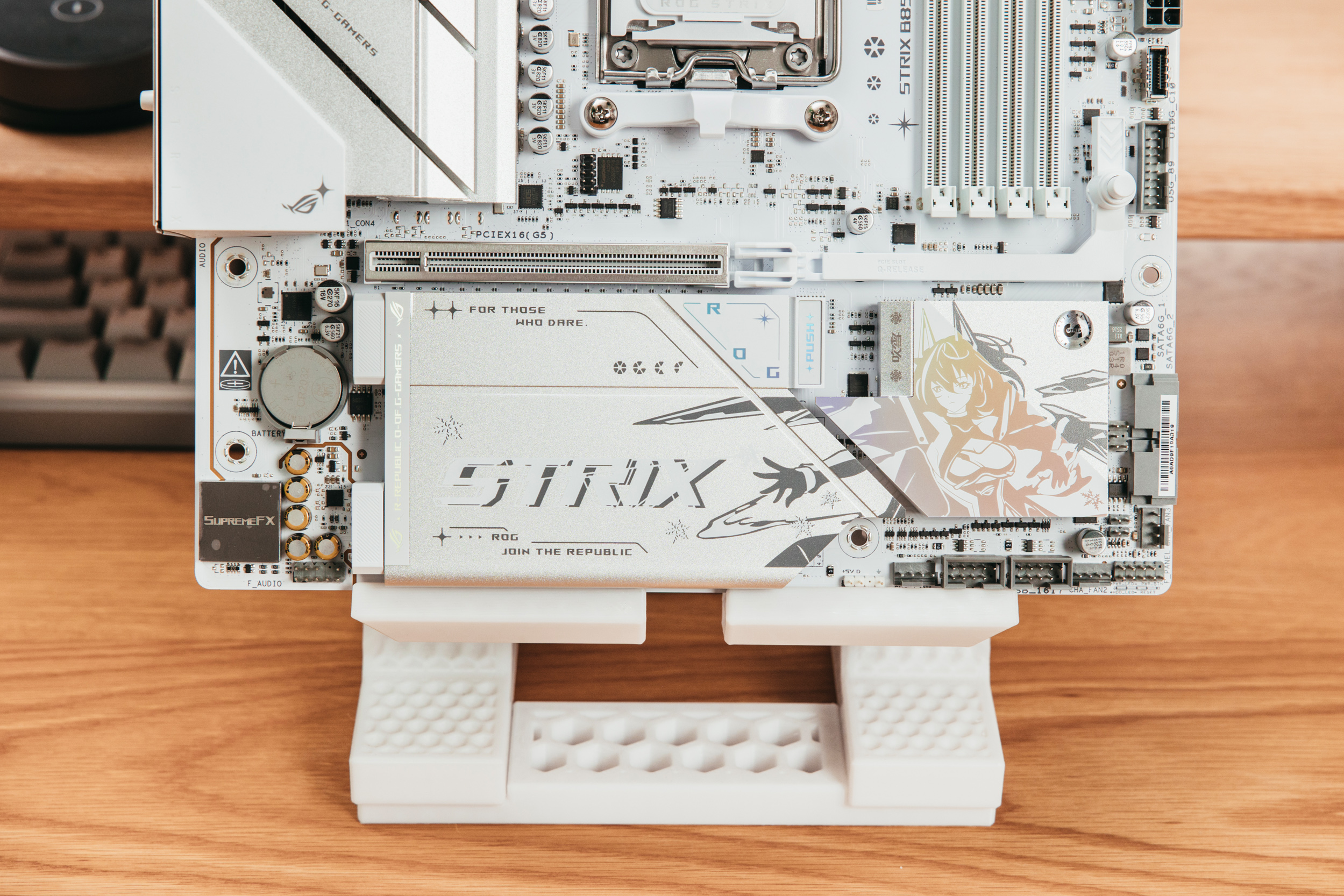 整张主板最显眼的地方为右下角的雪武战姬立绘,在不同角度和光线照射下会呈现不同的颜色。