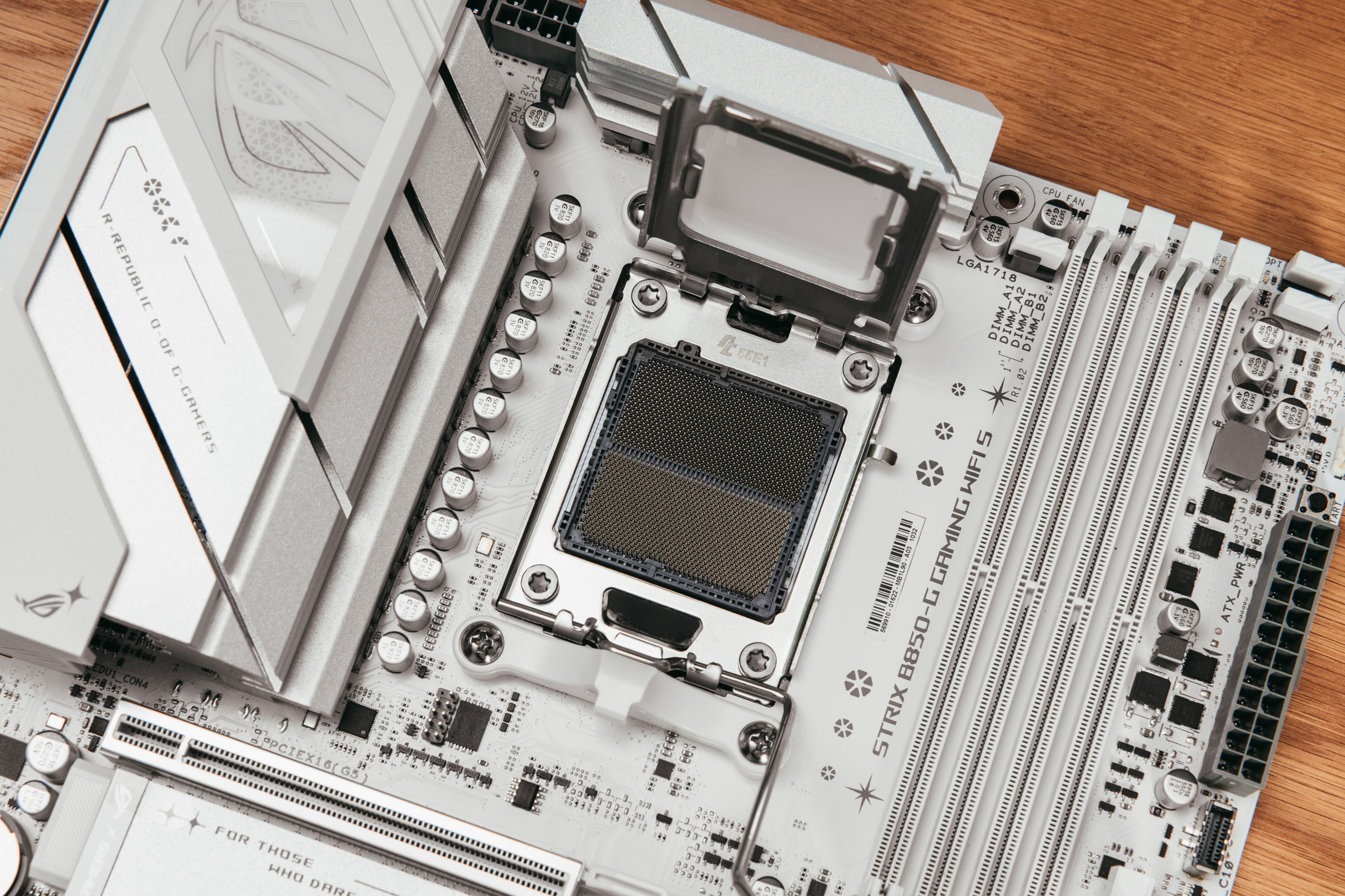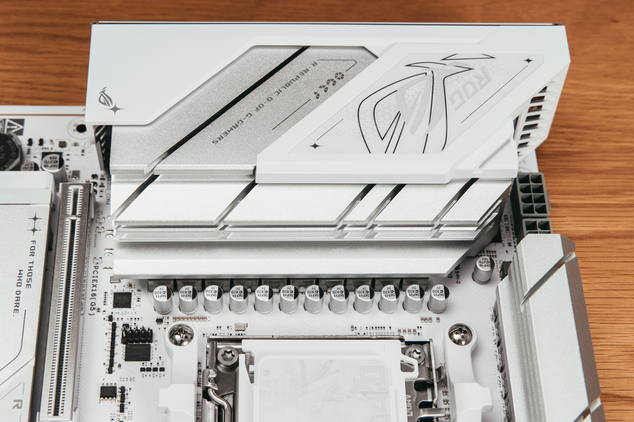 左上角的ROG logo也是占据了较大的面积,不知道各位对这张主板第一印象是什么?对我这么一个热衷于各种规格大小纯白主机的玩家来说,真就非常完美了。