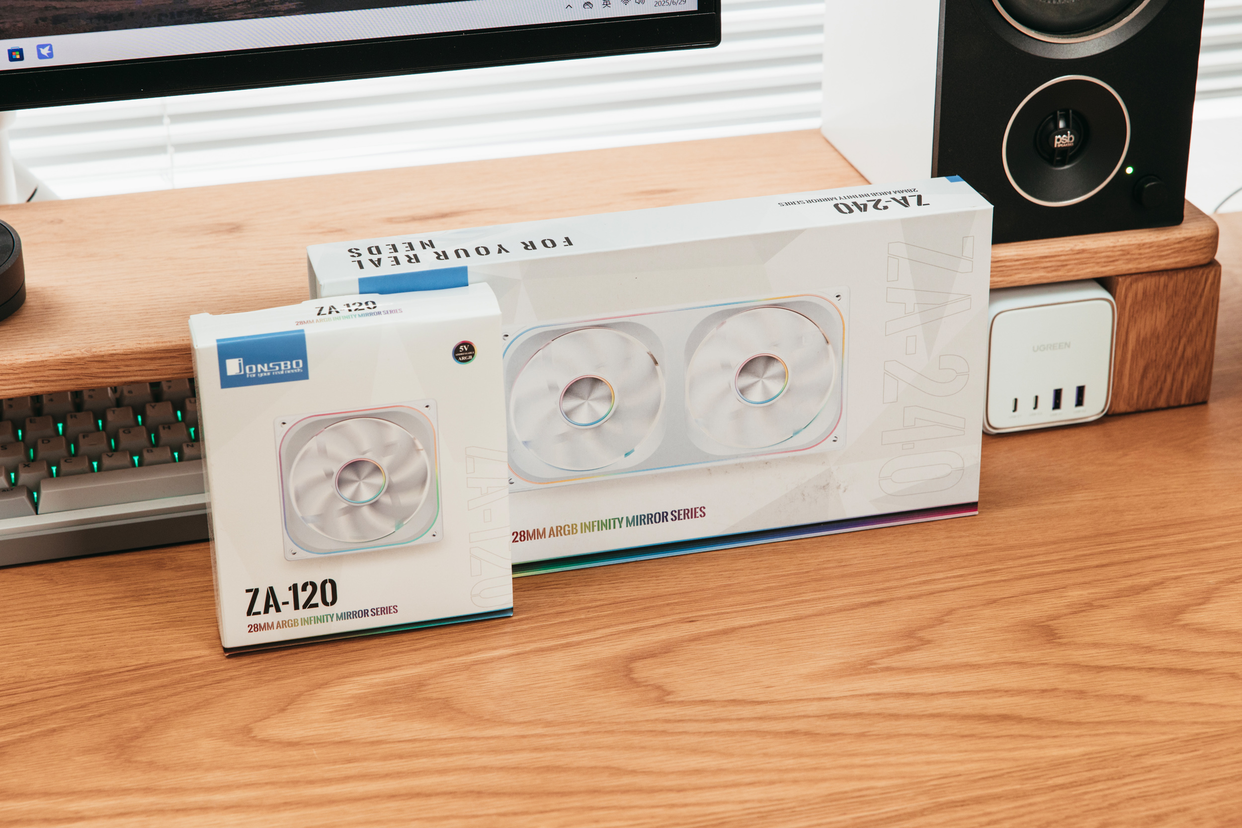 乔思伯ZA系列风扇是无限棱镜连体系列,包含了120、240和360,涵盖了正叶和反叶全系,主打一个四面千层光效,240以及360均为一线通,安装也非常方便。