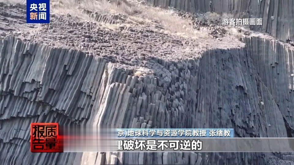 此外,张绪教还表示,游客上岛以后,攀爬到柱状节理上也会对柱状玄武岩造成破坏,这种破坏是不可逆的。