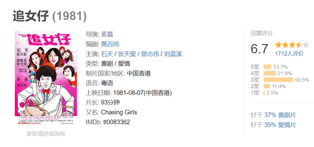 因为黄百鸣改编完麦嘉的这个《追女仔》之后,在1984年和高志森一起弄出了一个年度大爆款《开心鬼》,首开未成年少女剥削电影的先河。也是第一次用软色情的方式而不是露点的硬核方式玩剥削电影。同样是青春少男少女的模式,电影的区别当然很大,但背后的观众群是同一批人,也是同样的恋爱题材。成龙的《龙少爷》可早多了,说明眼光确实毒辣。