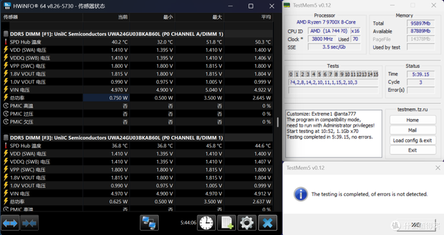 为了彻底放心,使用TM5进行烤机测试,同时记录温度表现。经过将近6个小时后绫龙DDR5也是顺利通过考验,最高温度控制在52℃以内。U1S1,这烤机时间也跟着内存数量翻了个倍。