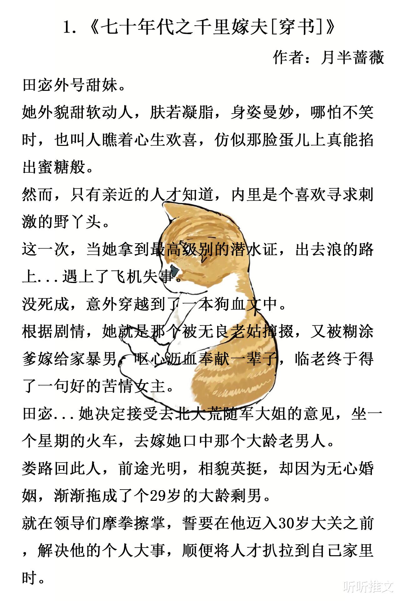 今天推荐三本日常年代文,慢热积极,强推《穿成女儿奴大佬的前妻》《七十年代之千里嫁夫[穿书]》,故事有趣向上,值得收藏。