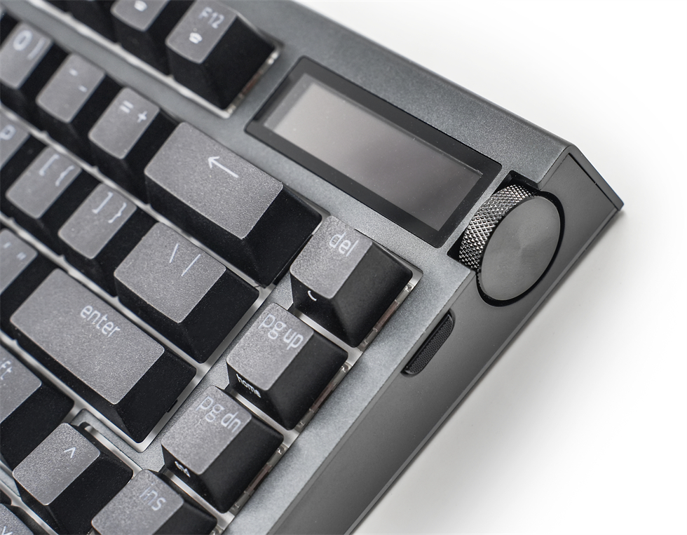 2英寸OLED显示屏可以显示键盘状态、自定义动画、音量调整、播放曲目、亮度调整等等内容,与多功能旋钮以及模式按键搭配使用,可以非常直观方便的调节音量、缩放、曲目选择等。 蛛皇黑寡妇蜘蛛V4无线专业版75%除了正面的轴体RGB灯效之外,两侧底部还各设计了一条RGB灯带。