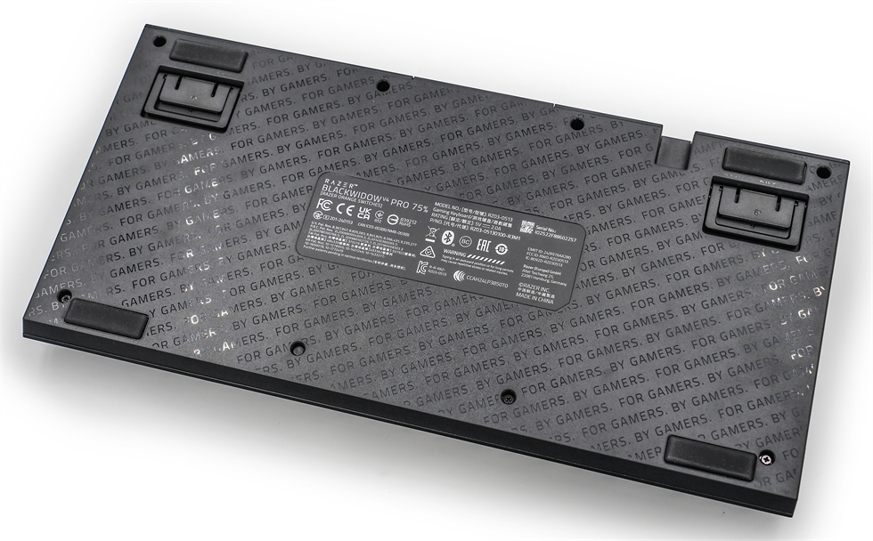 蛛皇黑寡妇蜘蛛V4无线专业版75%的支撑脚采用了两段式设计,背面看上去像是经过了碳纤维处理,其实上面整个被“FOR GAMERS.BY GAMERS”覆盖了,“始于玩家,赋予玩家”也是Razer一直所致力的方向。