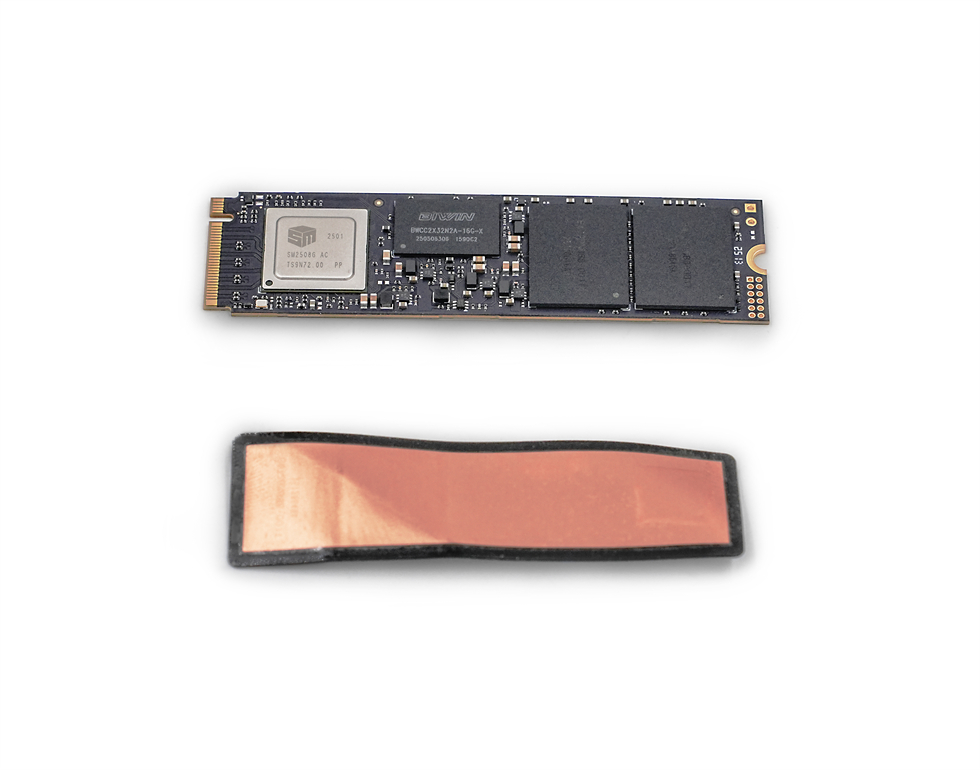 我原本以为宏碁掠夺者GM9000神舆M.2的贴纸是一般的贴纸,所以取下来的时候粗暴了点,结果取下来才发现其实是石墨烯+铜箔的复合材料散热贴,相比传统散热导热效率更高,能够更快的将主控和闪存颗粒产生的热量导出。