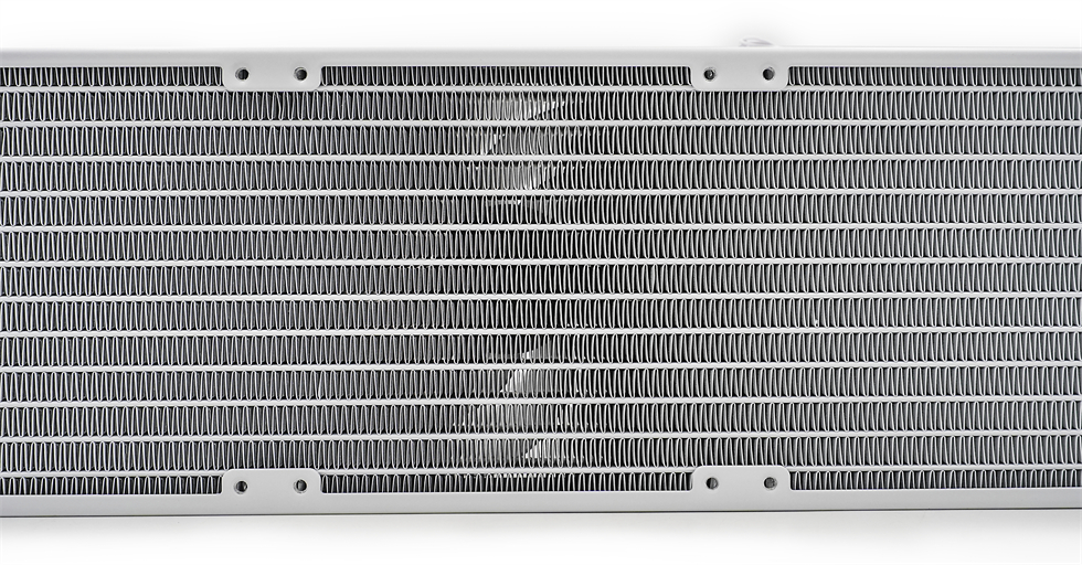 水冷排的水冷道中间是密集的散热鳍片。