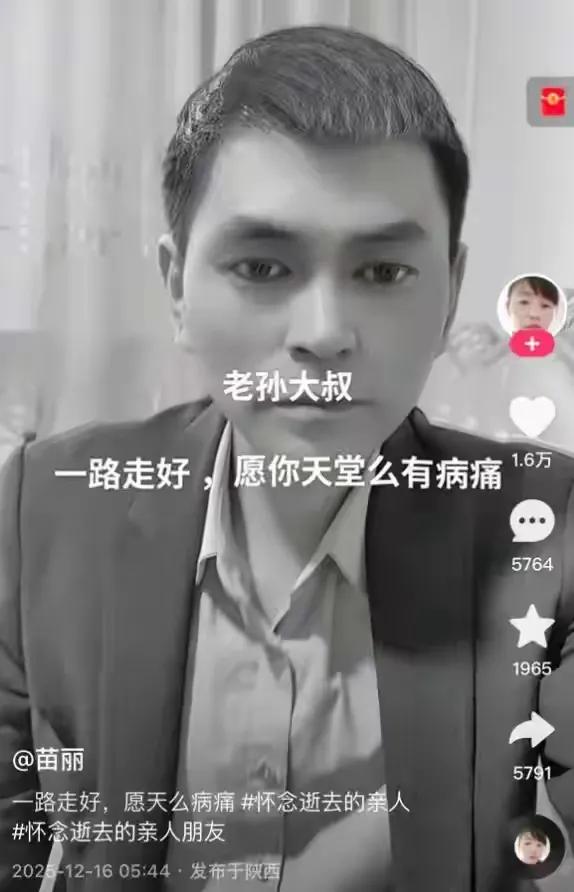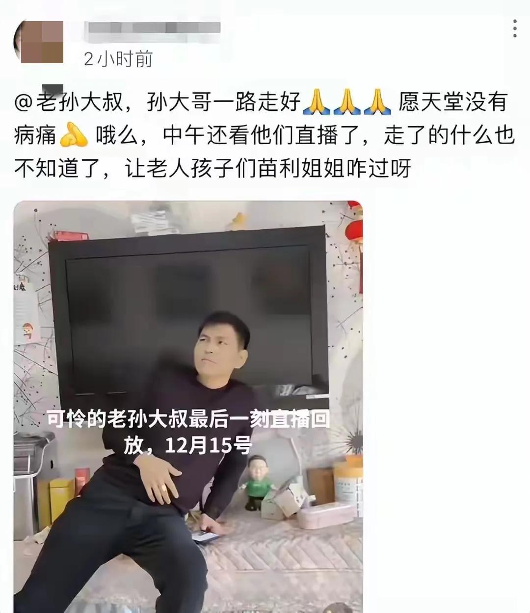 12月16日,相关账号已经证实,老孙大叔最终抢救无效,与世长辞,不少网友和粉丝都纷纷在评论区致哀,并希望家属节哀顺变。