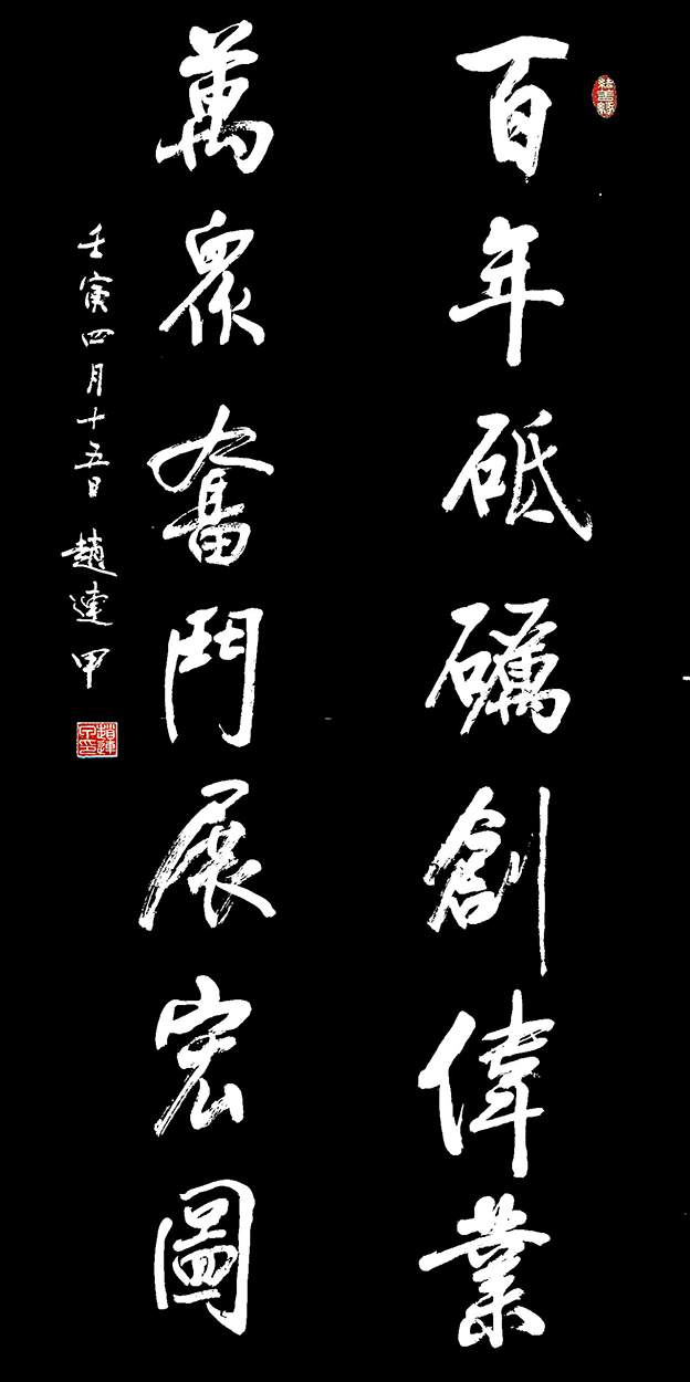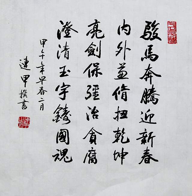 赵连甲,男,1947年8月生。北京昌平四家庄人。首师大中文系毕业。欧阳中石入室大弟子。解放军三军仪仗队文化顾问。人民大会堂首席艺术顾问。亚洲书画家协会主席。北大清华中央美院客座教授。东方文化研究院书法研究员。