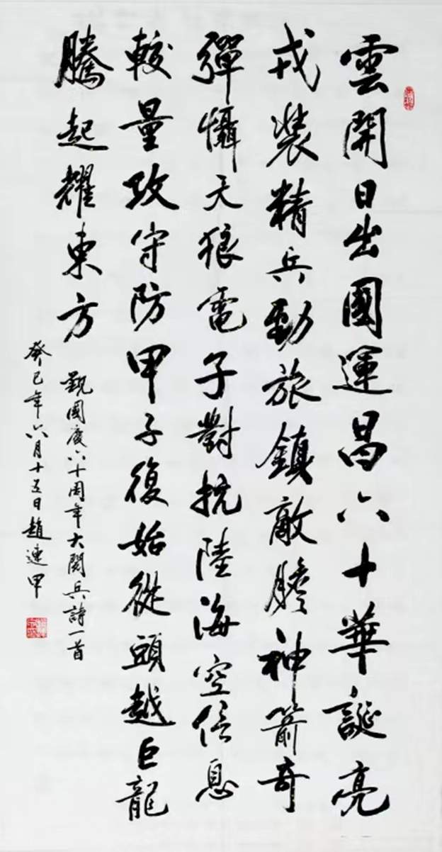 值此中国人民解放军建军97周年之际,书法名家赵连甲老师携作品向人民子弟兵致敬,并为中华文化新辉煌贡献力量,向全国及大众展示当代艺术名家风采。