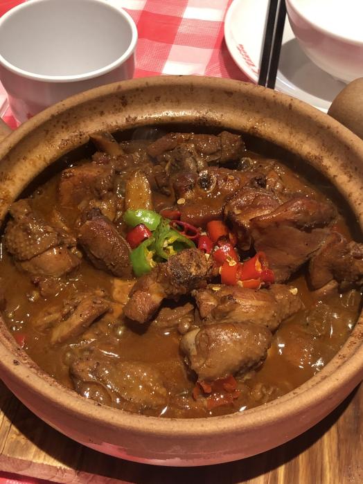 明火现烧的锅气,各种砂锅菜拌饭、盖饭选择好多!明档厨房喷酒精明火视觉很带感!干豆角红烧肉,红烧肉真的超级下饭,不腻!油泼毛血旺和水煮肉片都不错,不会很辣,但很香!