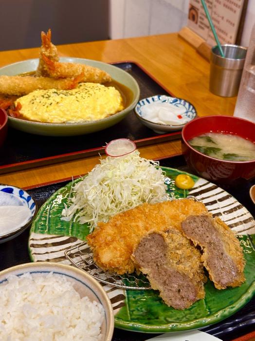照烧三色饭,肉很嫩很入味搭配滑蛋、秋葵、西兰花很好吃,天罗妇汁浸炸猪排套餐 浸过米饭好好吃!里面还有海苔碎 搭配炸猪排刚刚好~