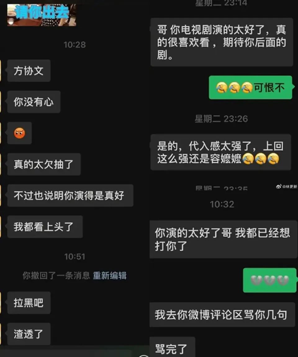 林更新倒也不恼,跟激愤的观众们据理力争,还晒出自己在私信中与亲人朋友的交流。不得不说林更新将这个角色演绎得颇成功,戏外的交流也显得有趣又解气。